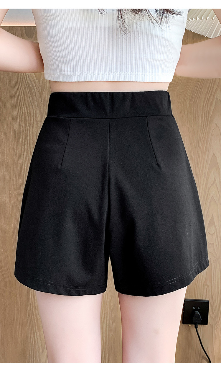时尚高腰阔腿休闲短裤夏季松紧腰纯色简约拼接设计显瘦针织A字裤 691800