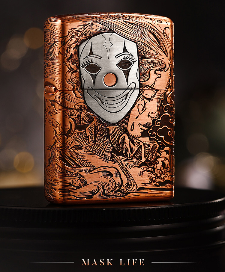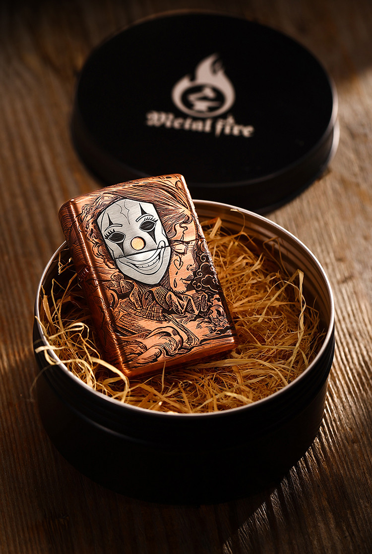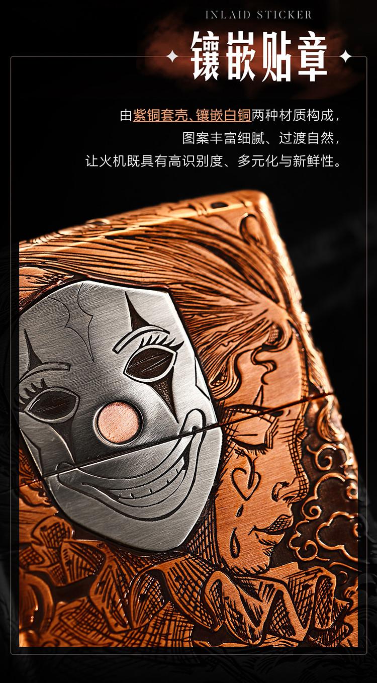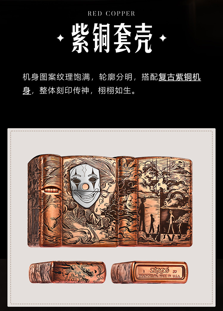 商品名称:打火机原装正品紫铜套壳面具人生煤油防风复古风礼品礼物送礼 919262
