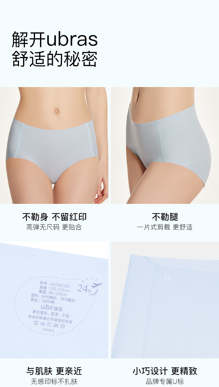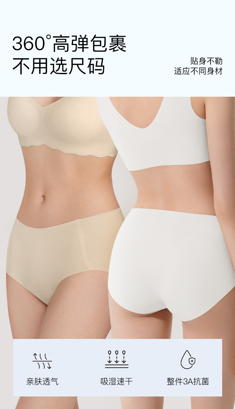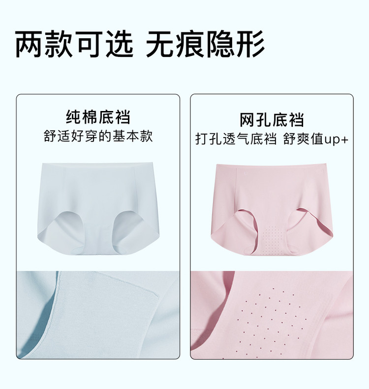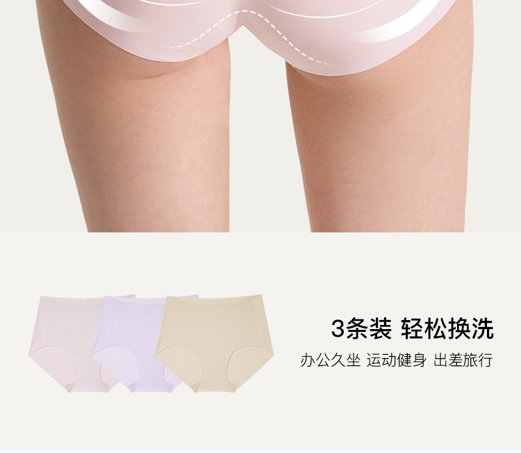 商品名称:【透气网孔底档】3条装无尺码包臀中腰三角裤无痕不夹臀内裤女 345408