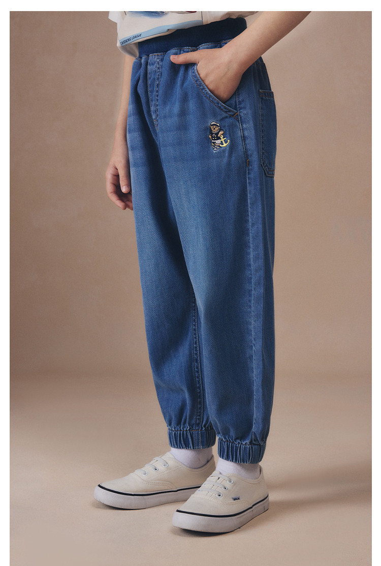 商品名称:【牛仔裤】小熊童装夏季男童舒适休闲束口牛仔长裤 785665