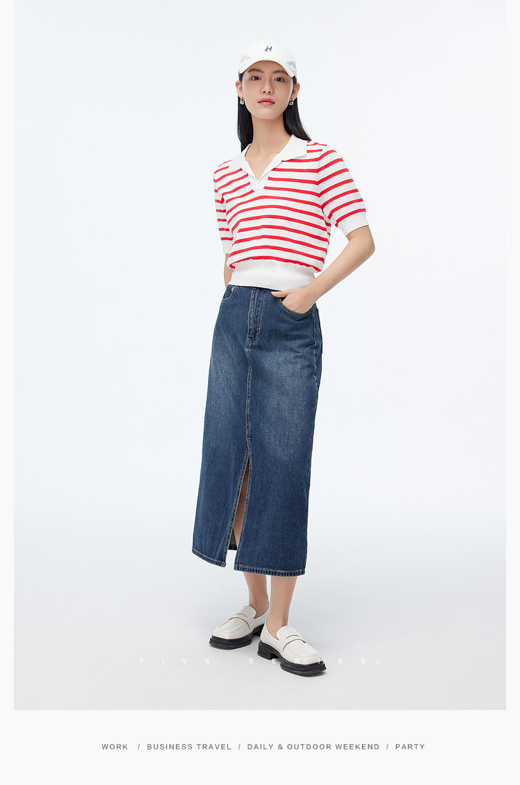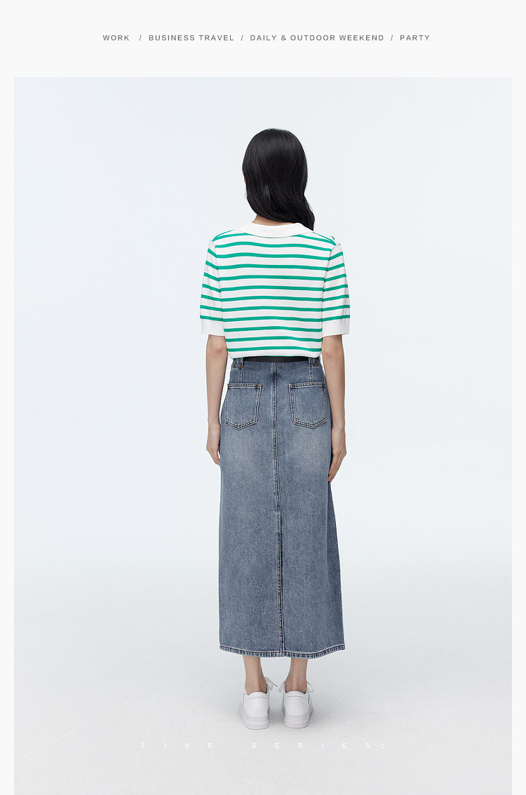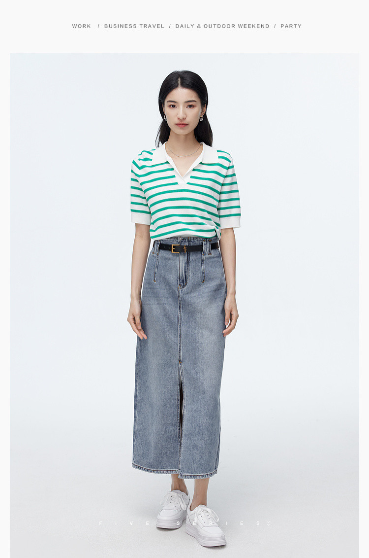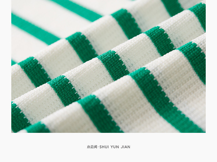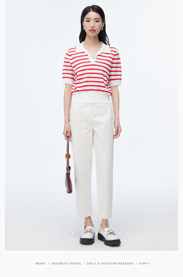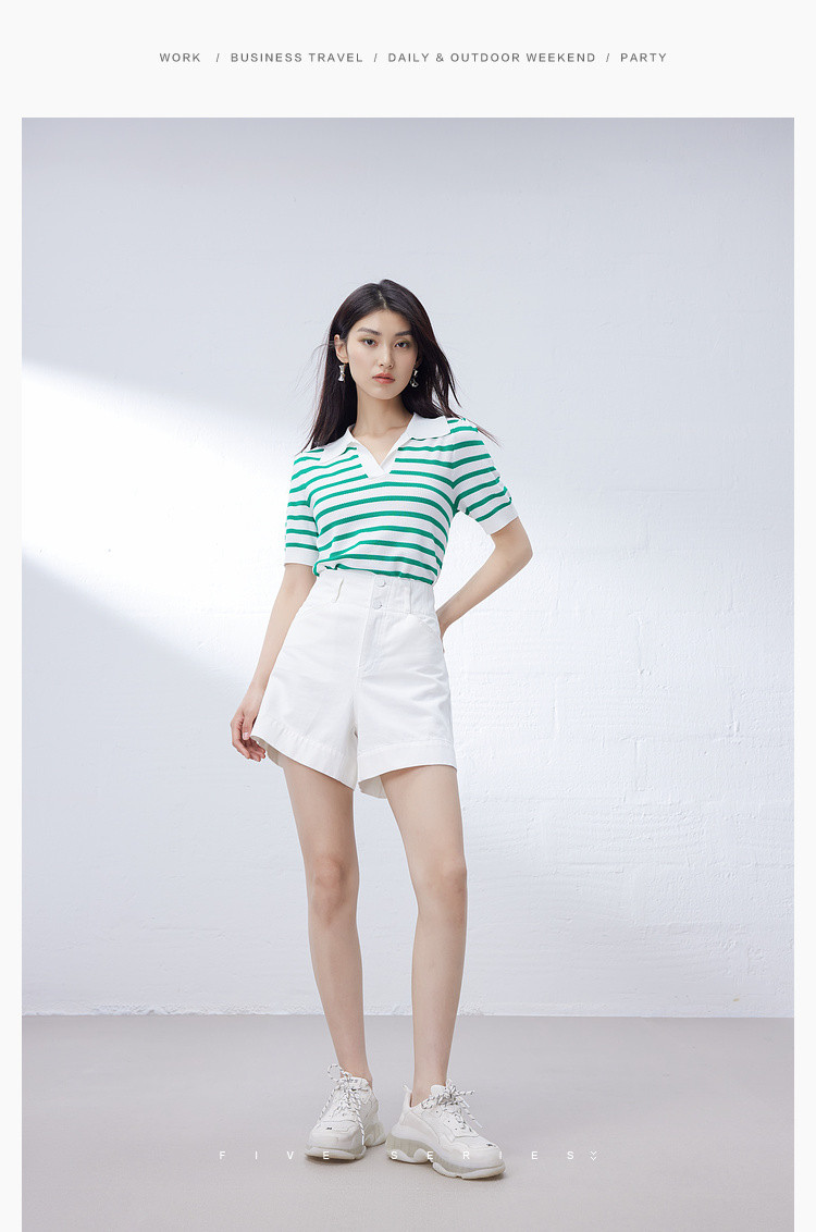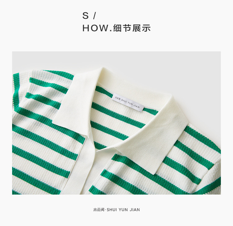 商品名称:撞色条纹短袖针织衫女夏季休闲时尚百搭上衣显瘦翻领针织T恤女 383235