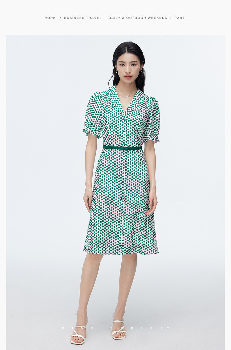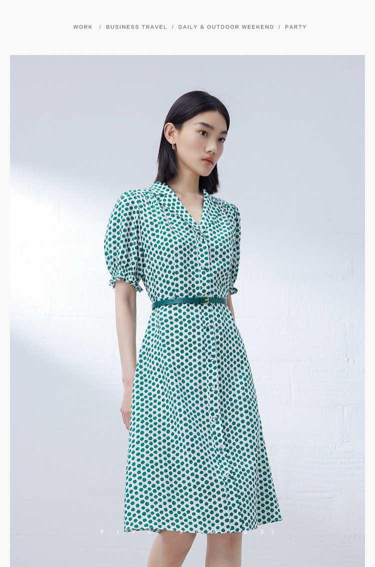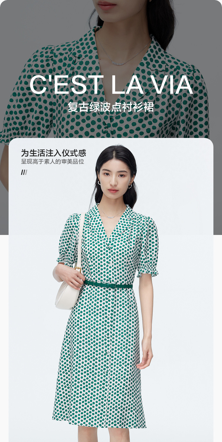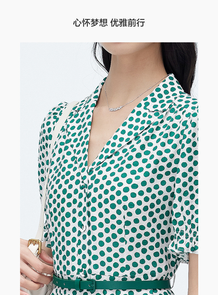商品名称:【配送腰带】中长款复古波点衬衫连衣裙女气质港风A字裙 280835