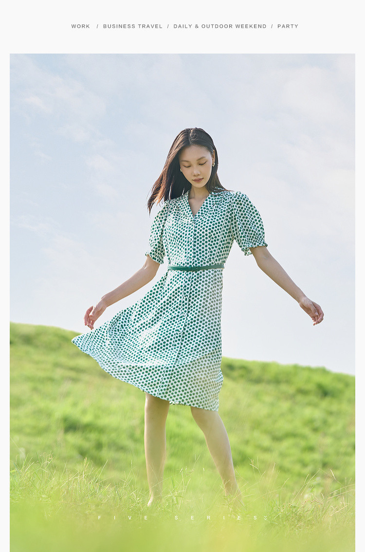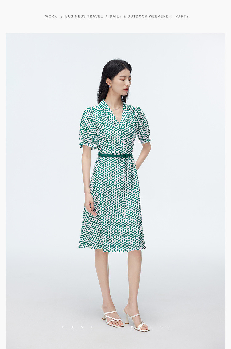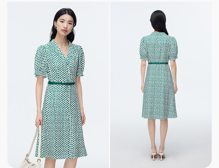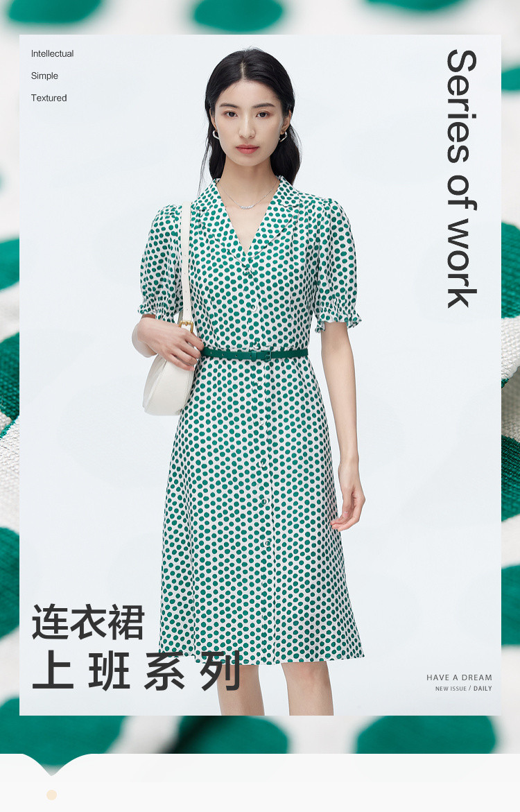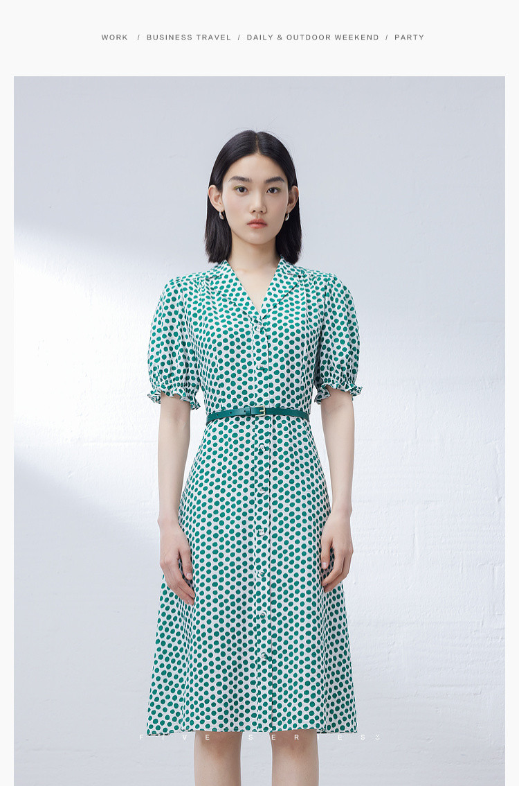 商品名称:【配送腰带】中长款复古波点衬衫连衣裙女气质港风A字裙 280835