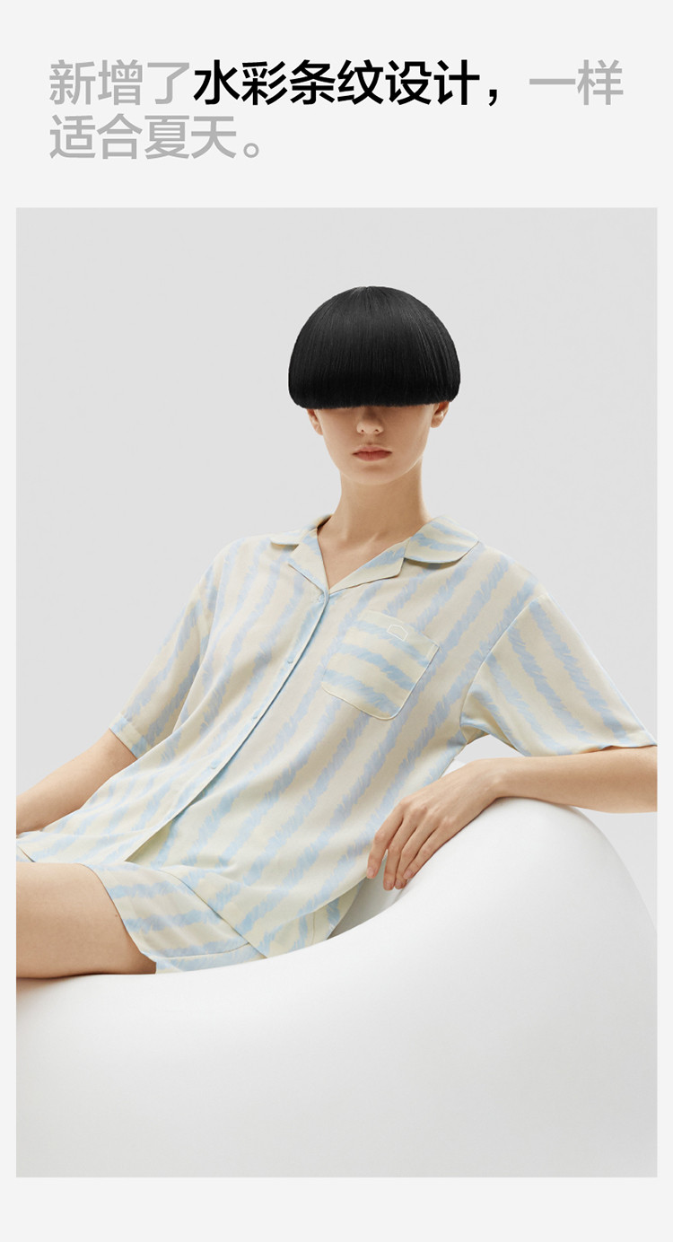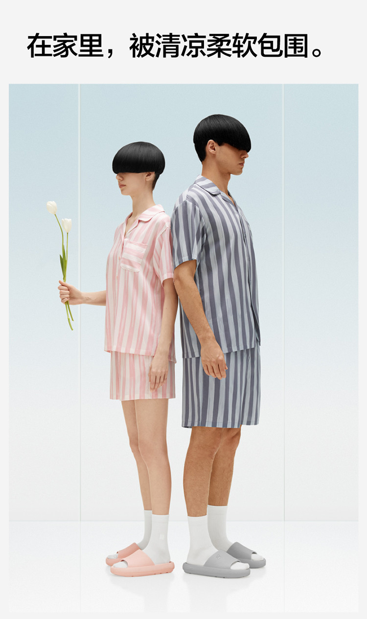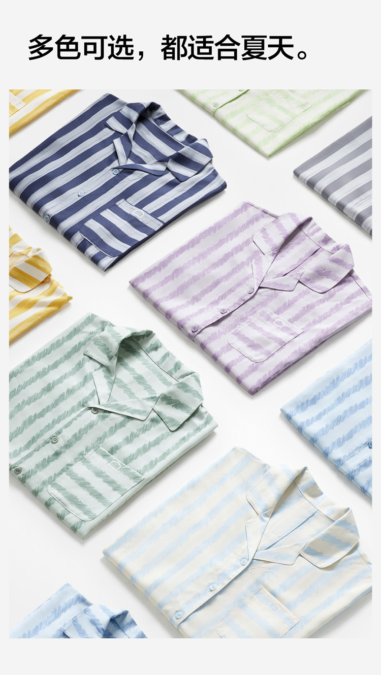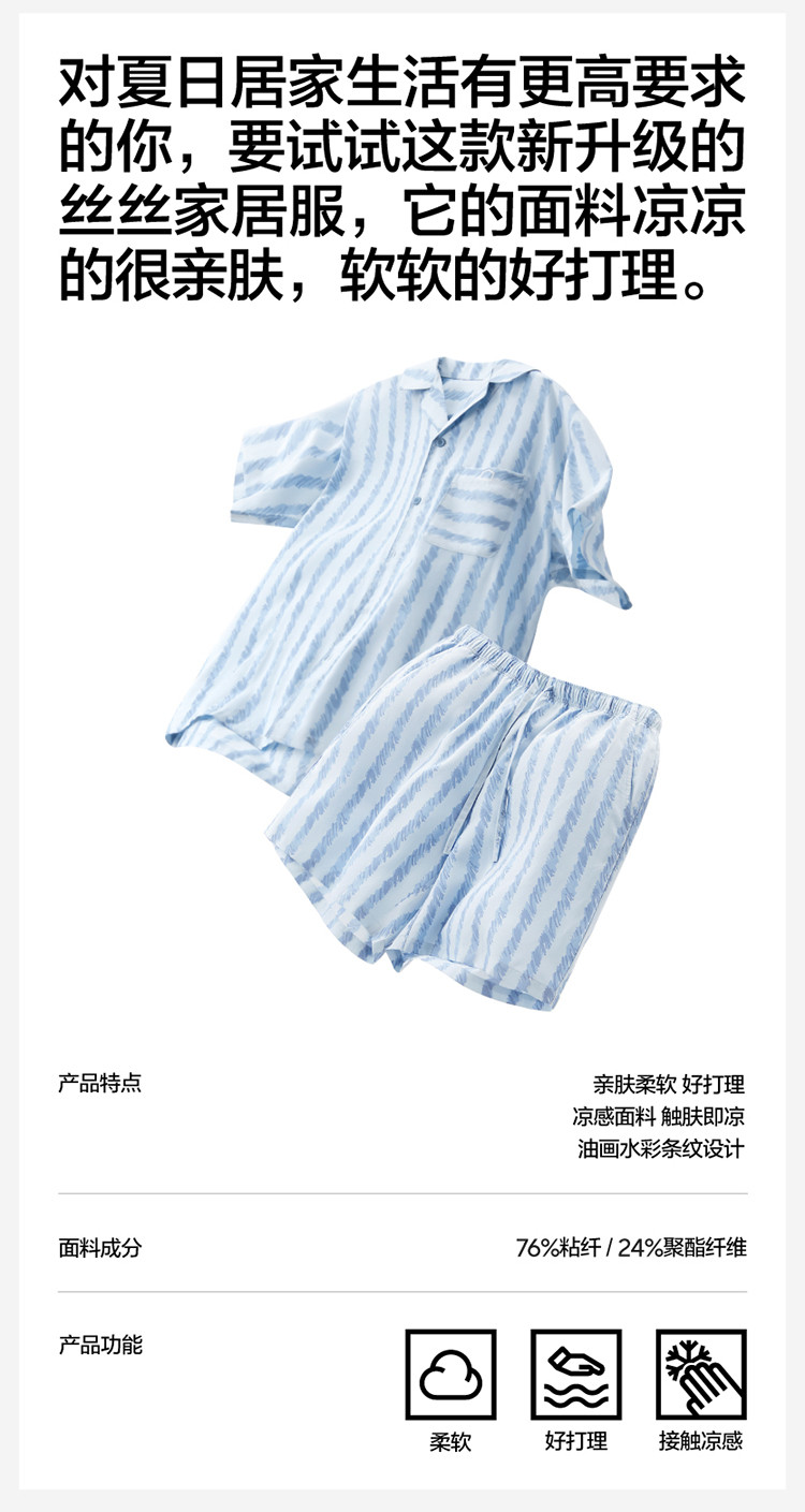 商品名称:丝丝505H睡衣女条纹家居服短袖凉感透气丝滑情侣睡衣套装夏季 030661
