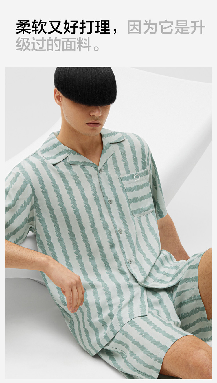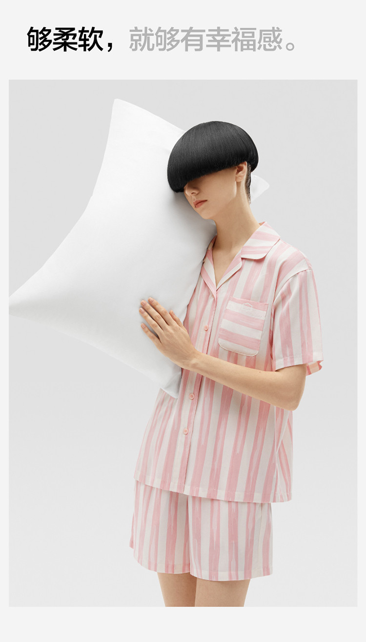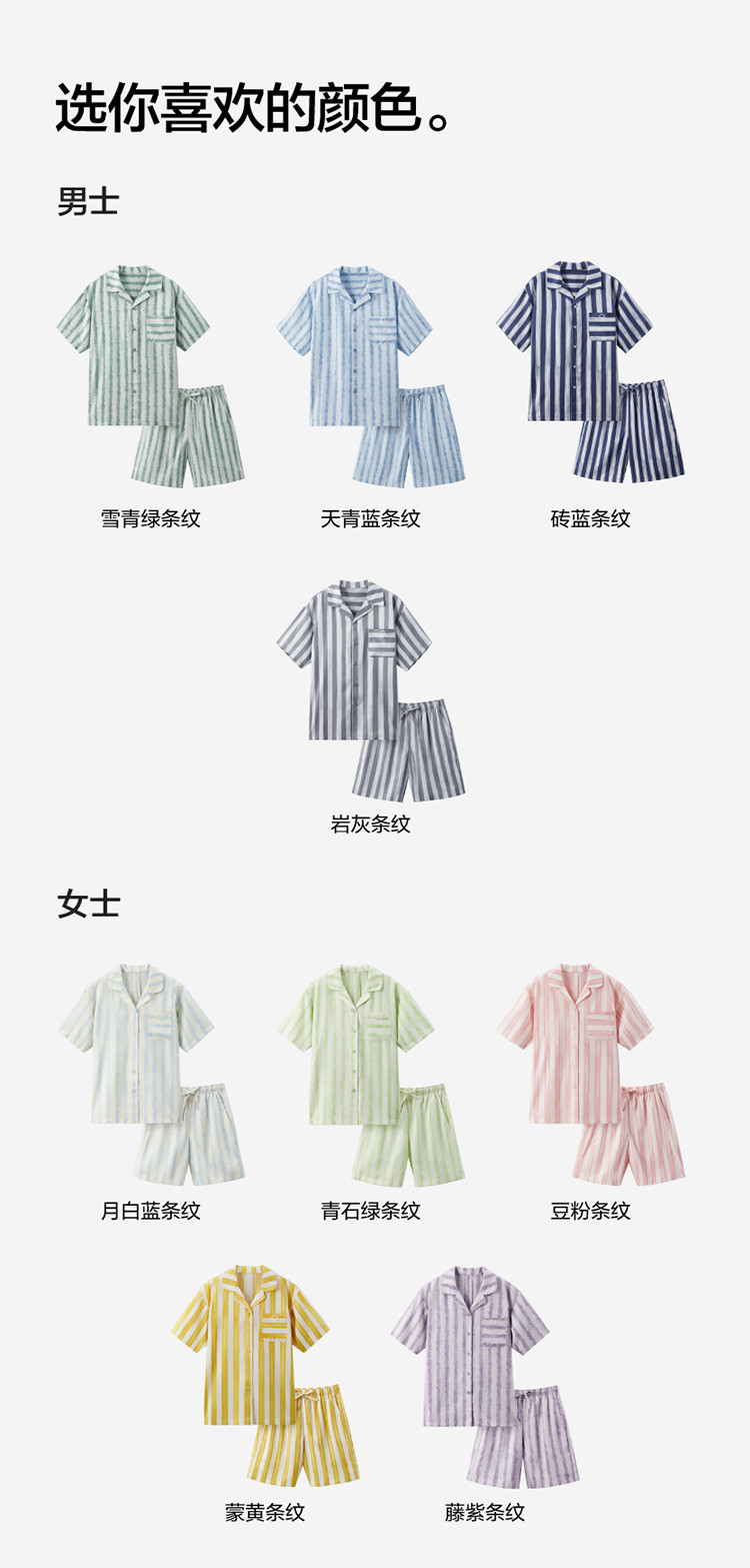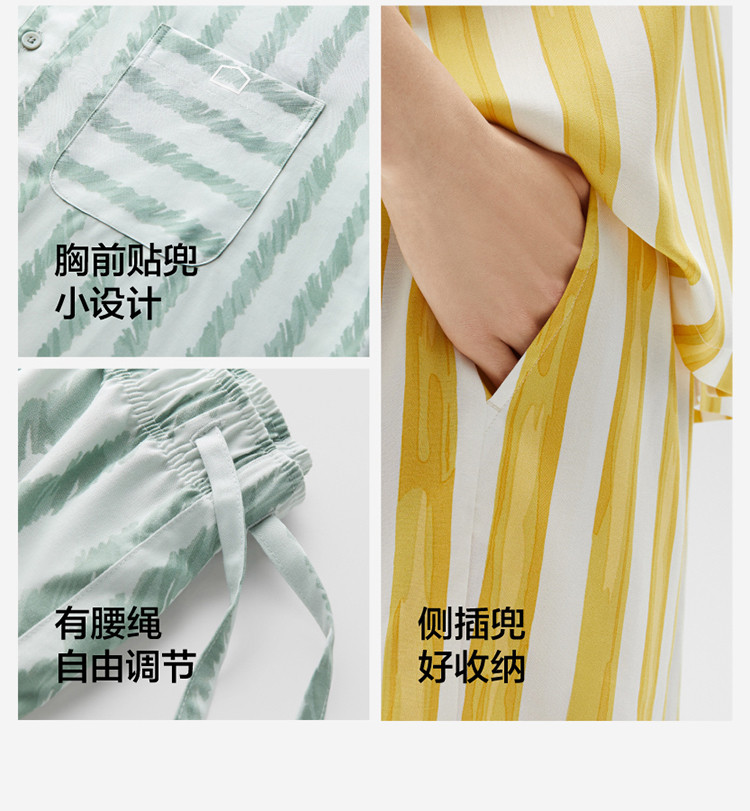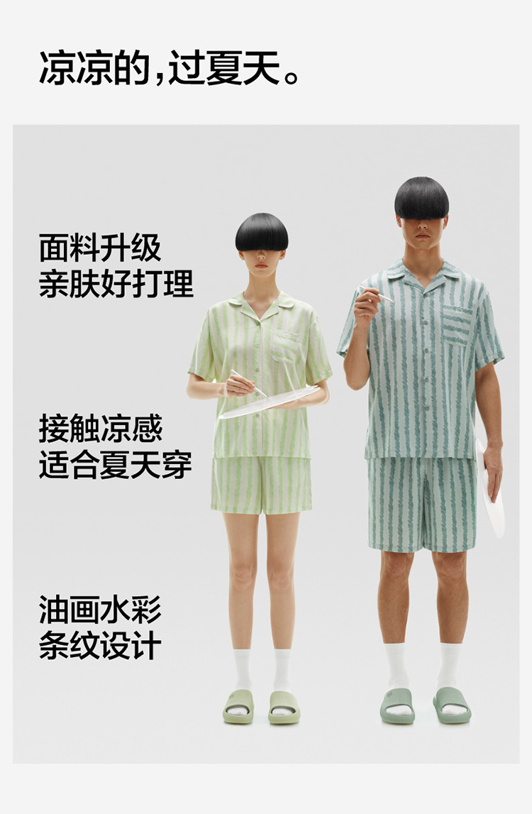 商品名称:丝丝505H睡衣女条纹家居服短袖凉感透气丝滑情侣睡衣套装夏季 030661