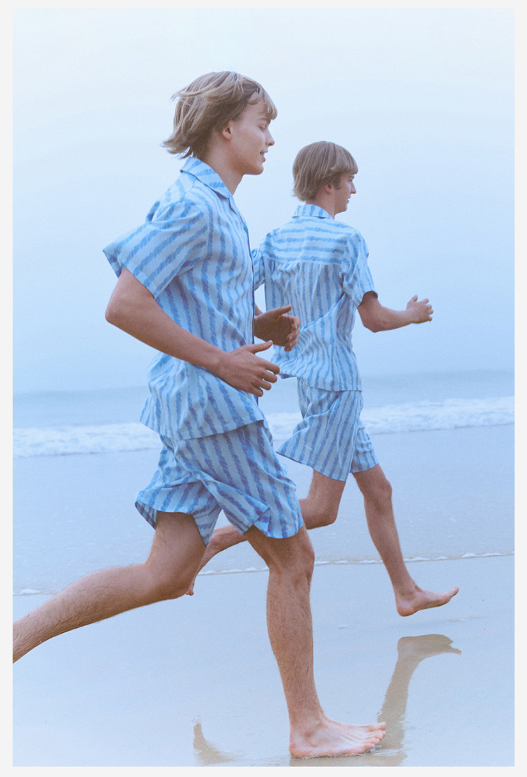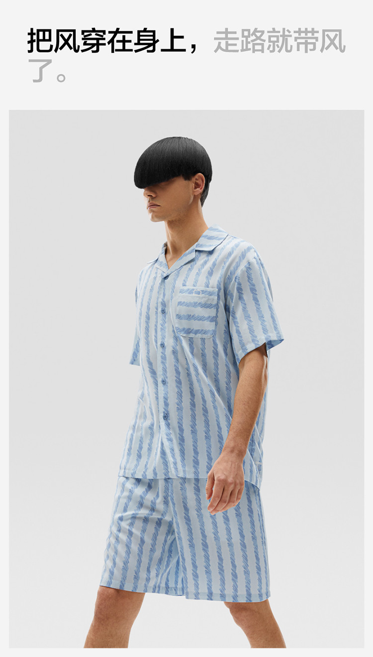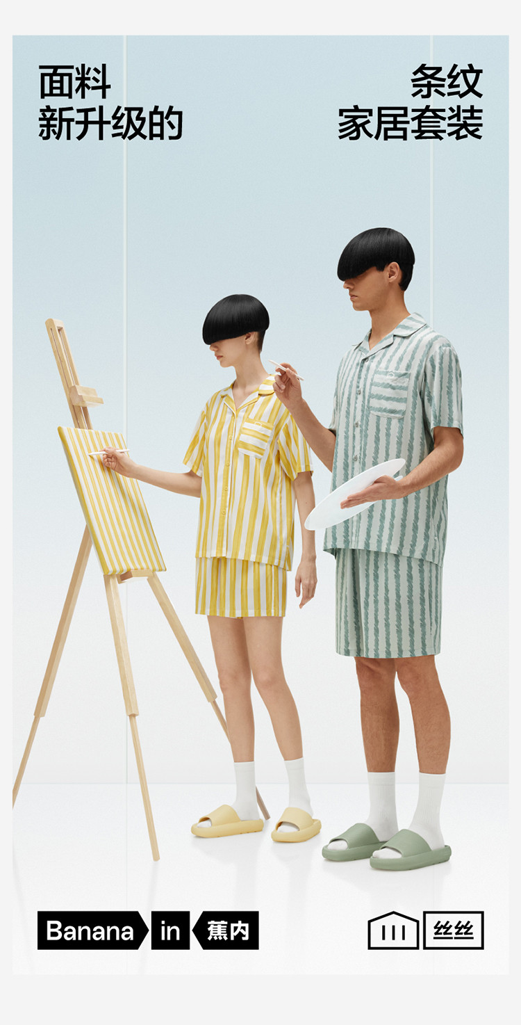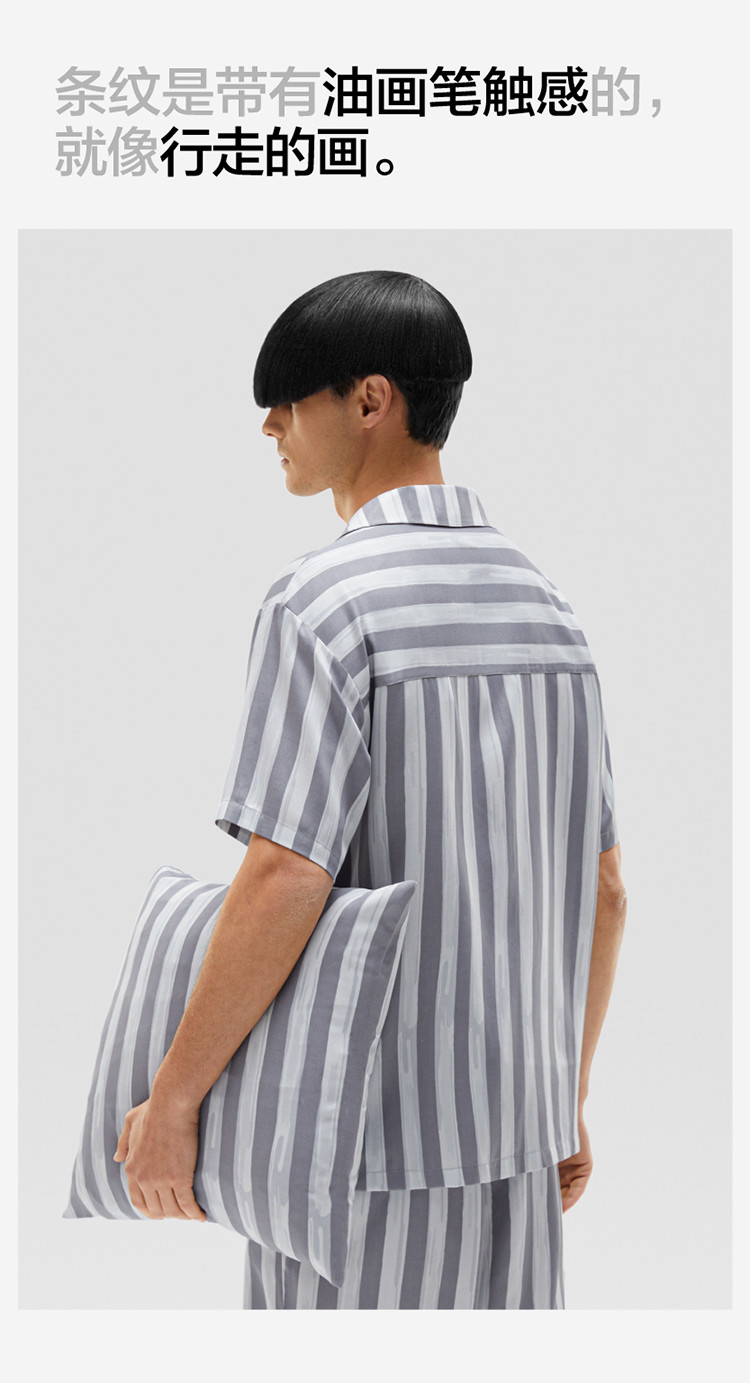 商品名称:丝丝505H睡衣女条纹家居服短袖凉感透气丝滑情侣睡衣套装夏季 030661