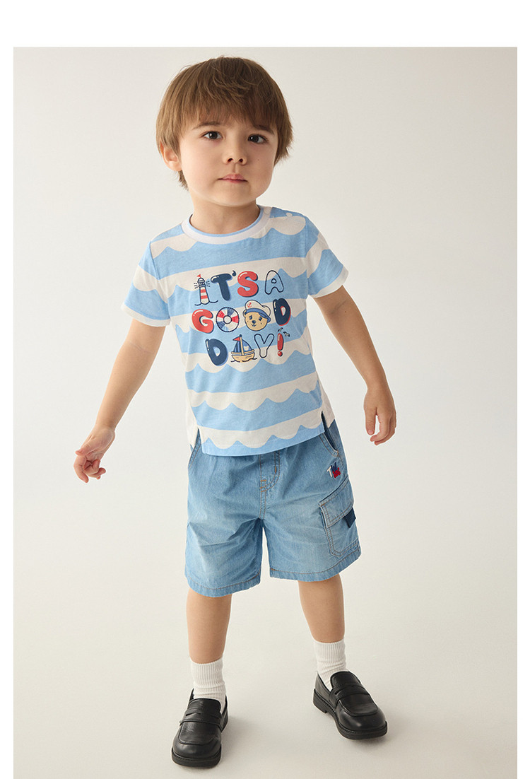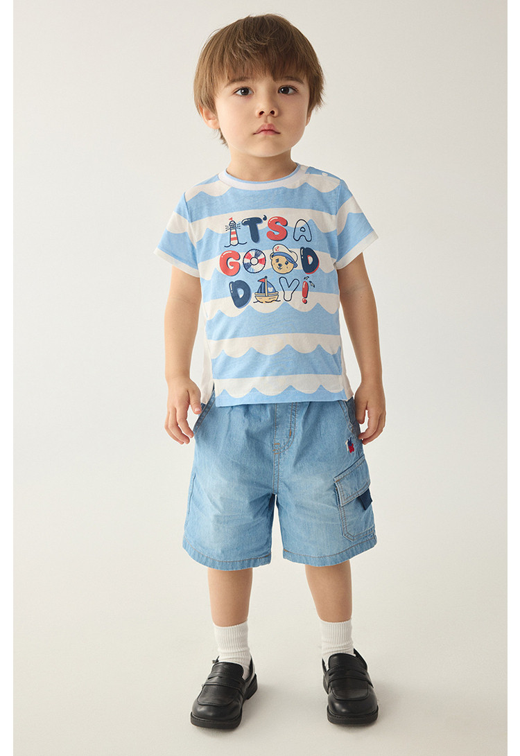 【牛仔裤】小熊童装夏季男宝宝帅气运动风牛仔短裤 986369