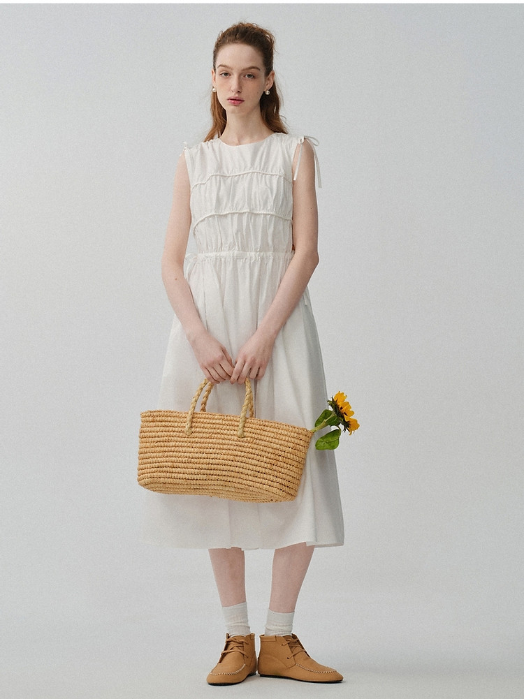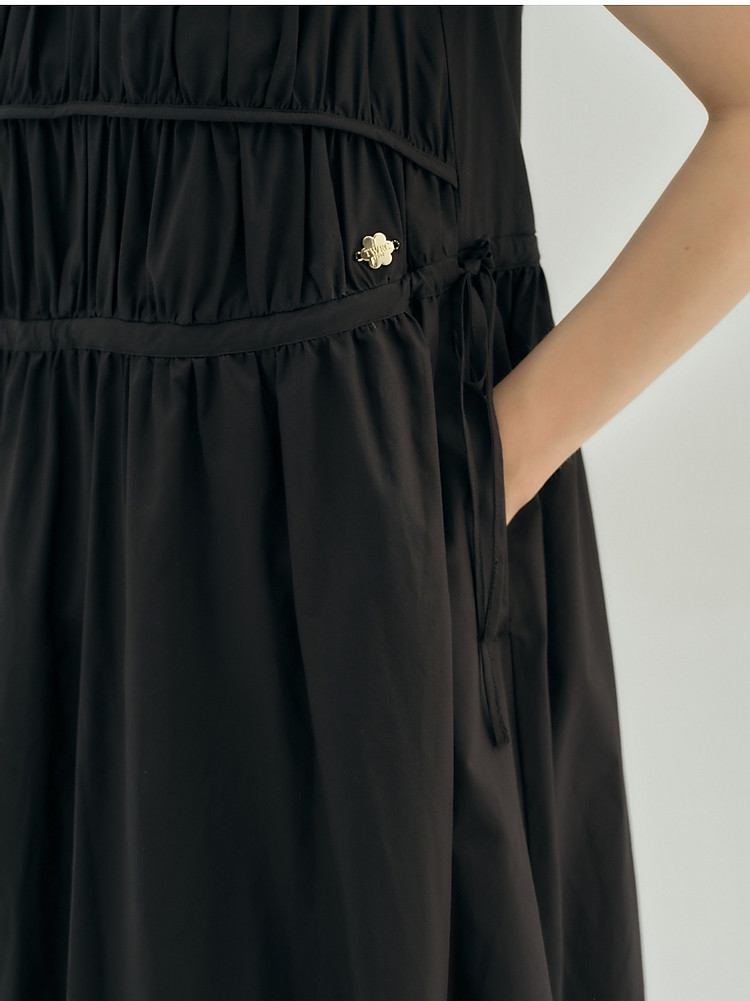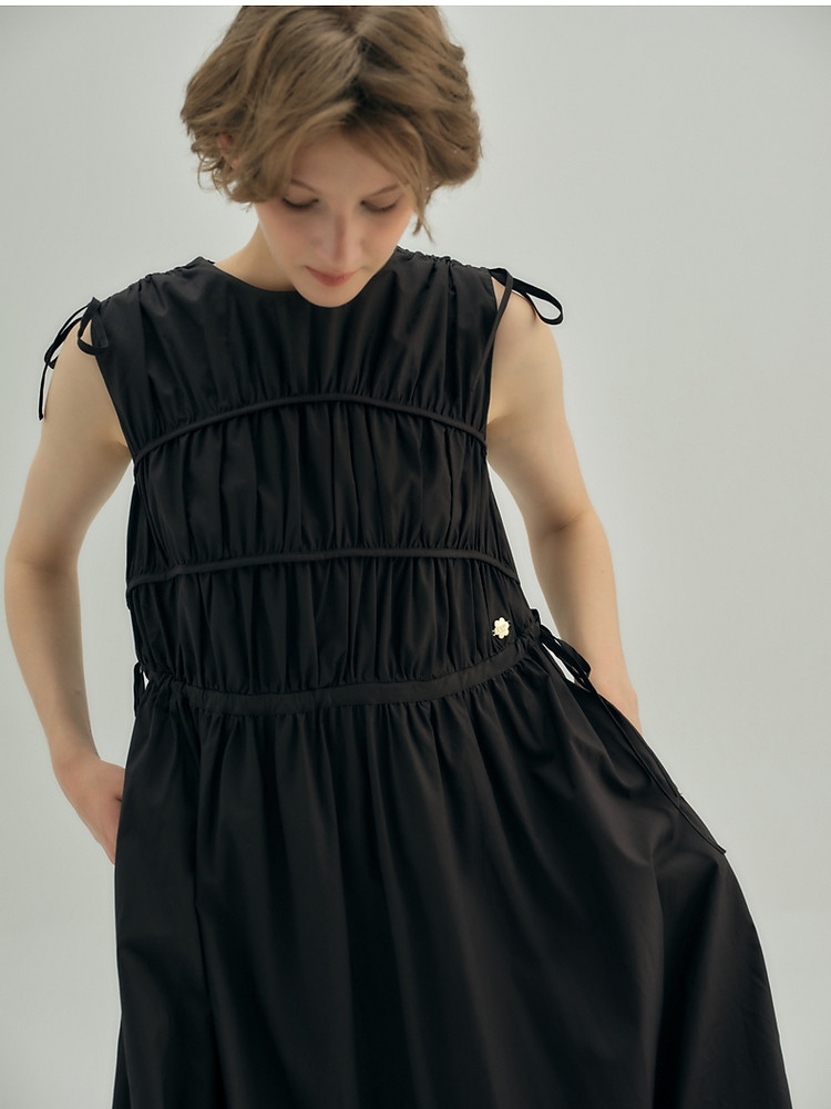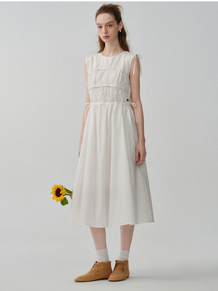 商品名称:连衣裙女夏季法式淑女系带收腰无袖连衣裙长裙女 395201
