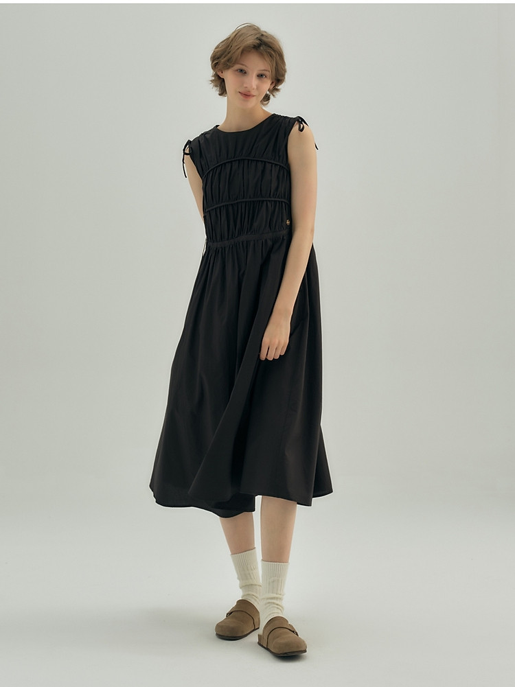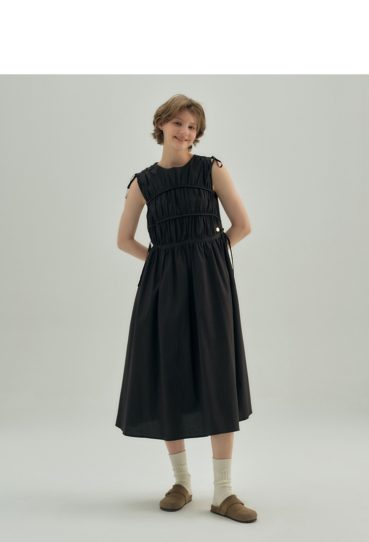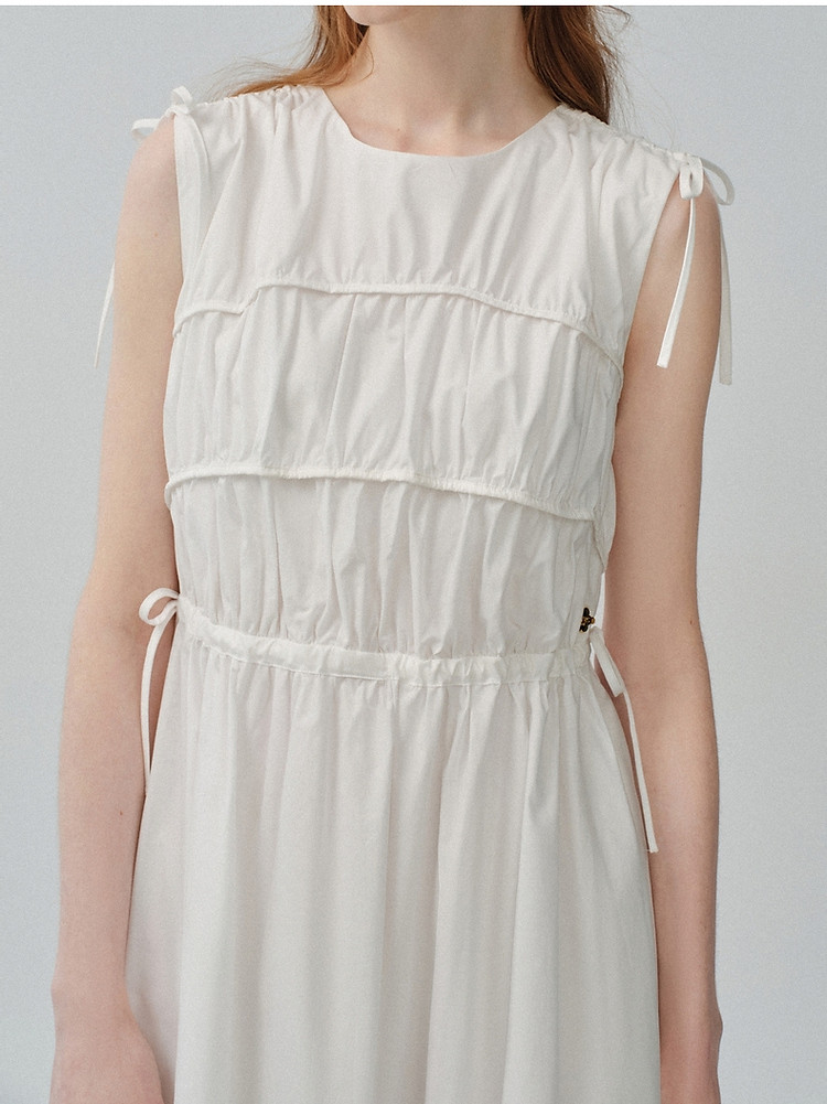 连衣裙女夏季法式淑女系带收腰无袖连衣裙长裙女 395201