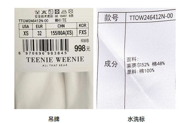 小熊气质学院风撞色Polo领短袖毛针织连衣裙 030913