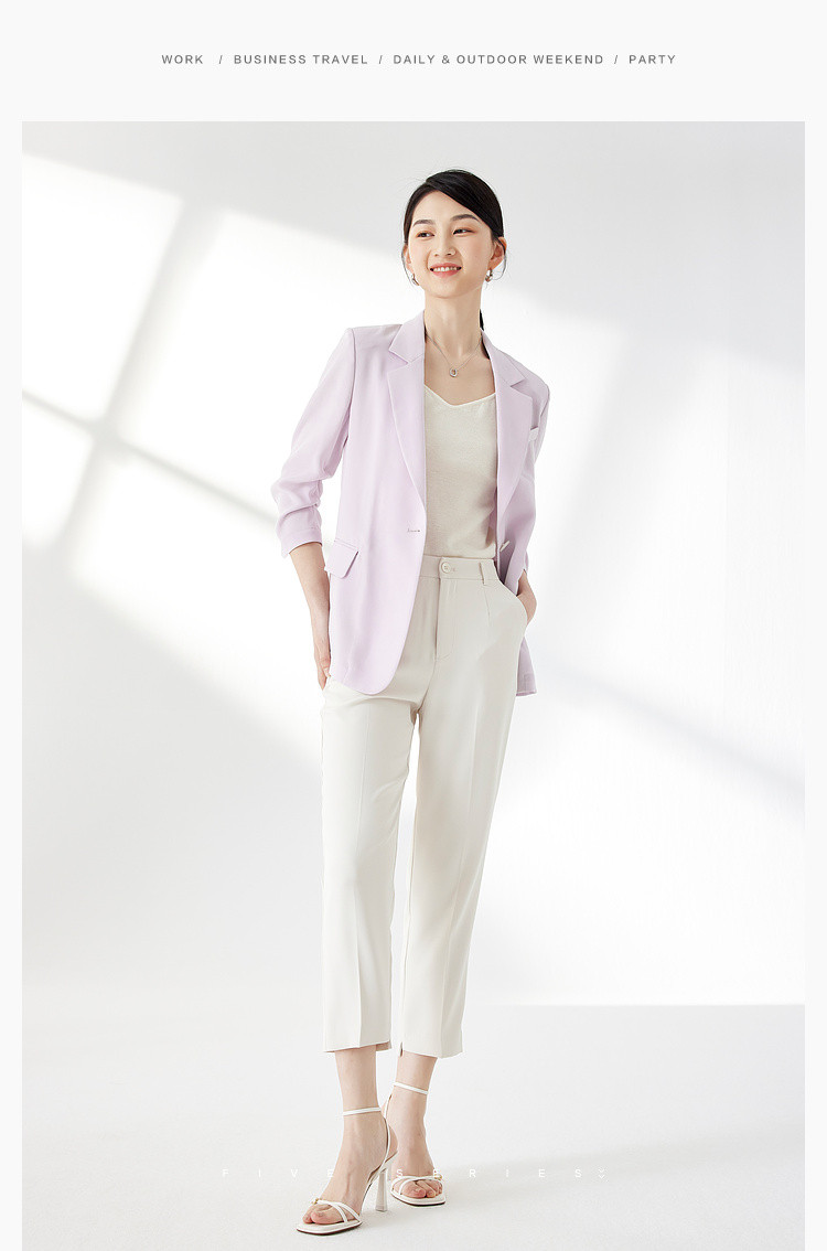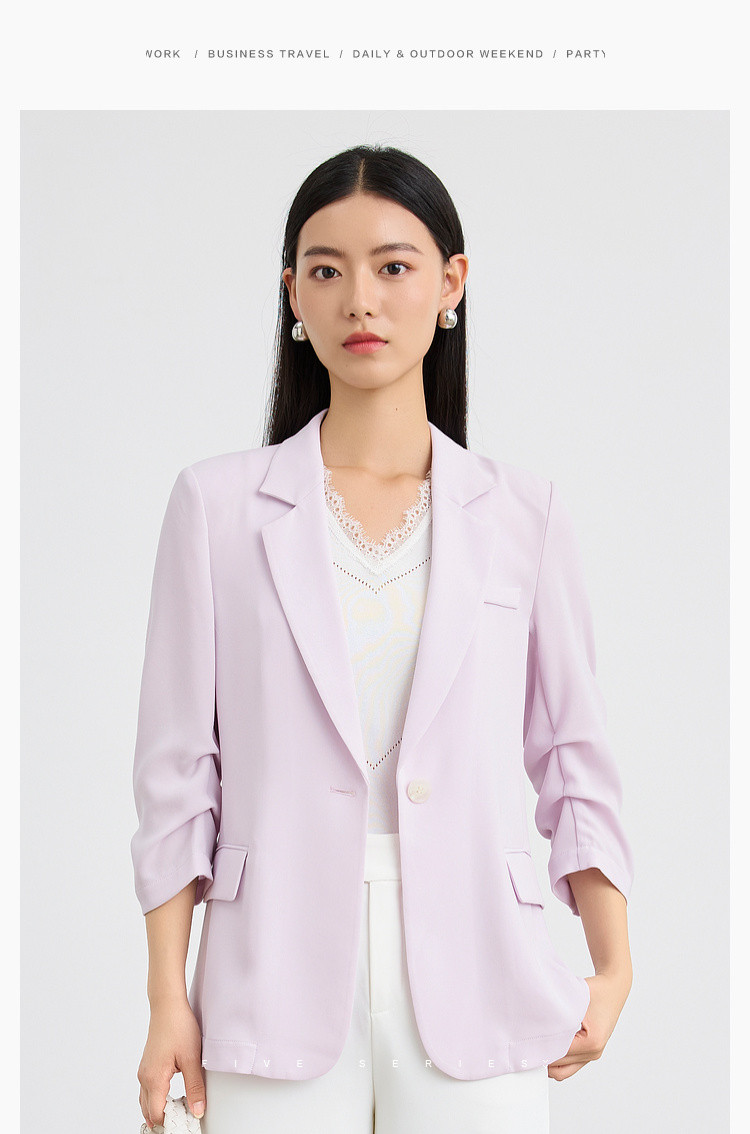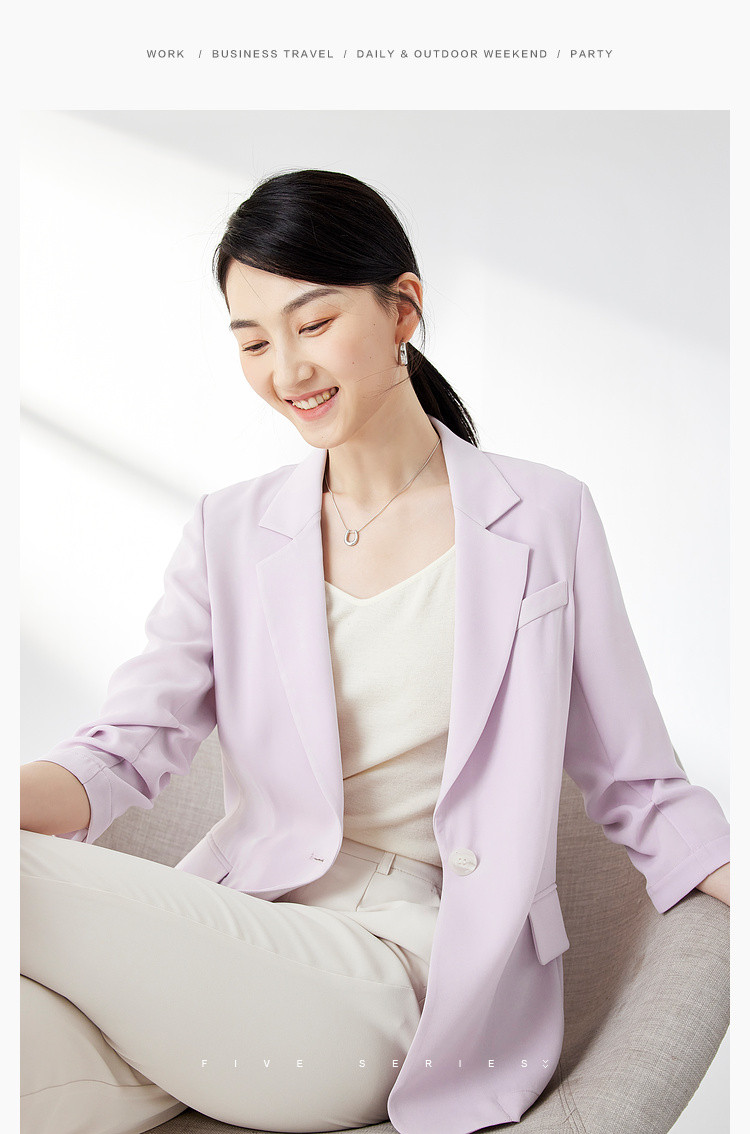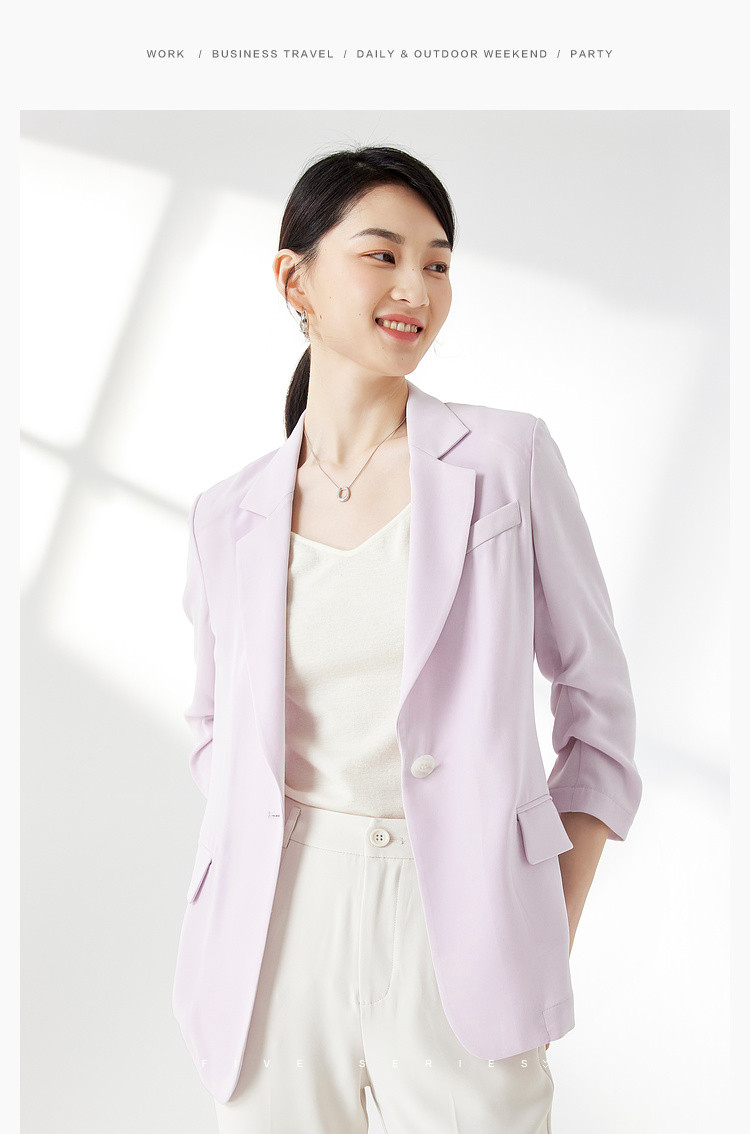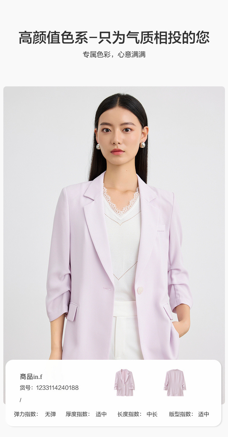 商品名称:设计感纯色小西装外套女夏高级感时尚通勤简约七分袖薄款西服 309891