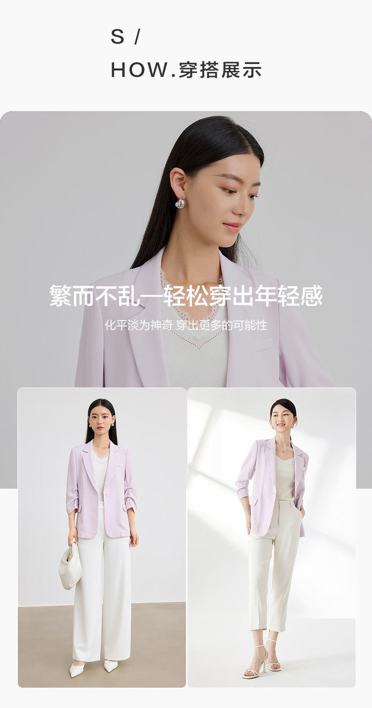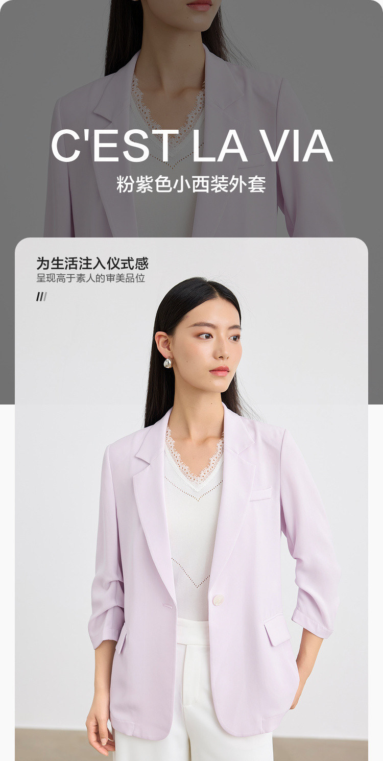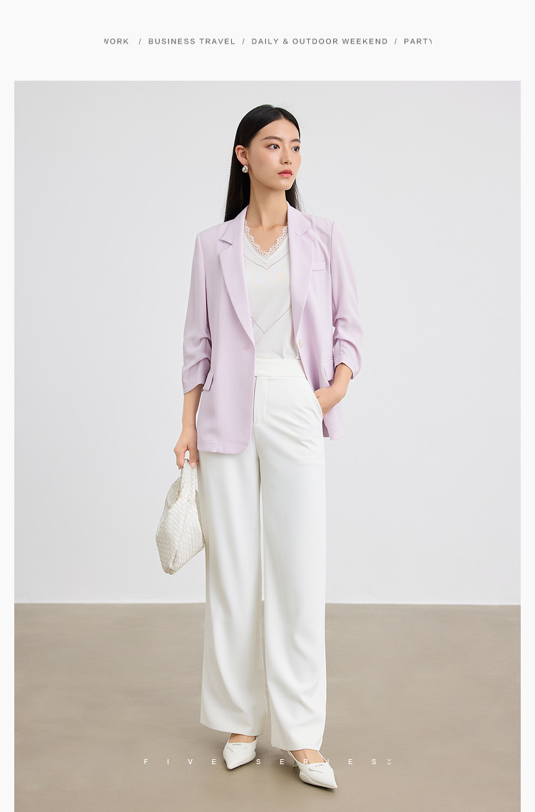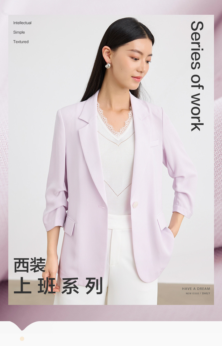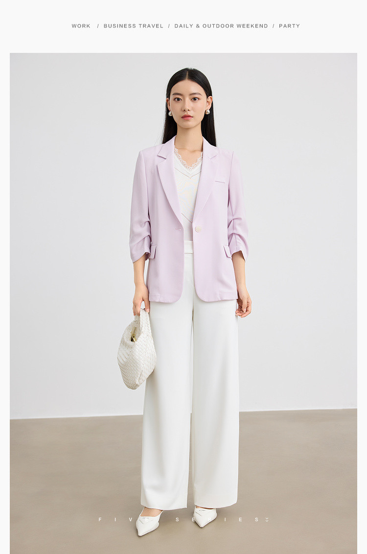 商品名称:设计感纯色小西装外套女夏高级感时尚通勤简约七分袖薄款西服 309891