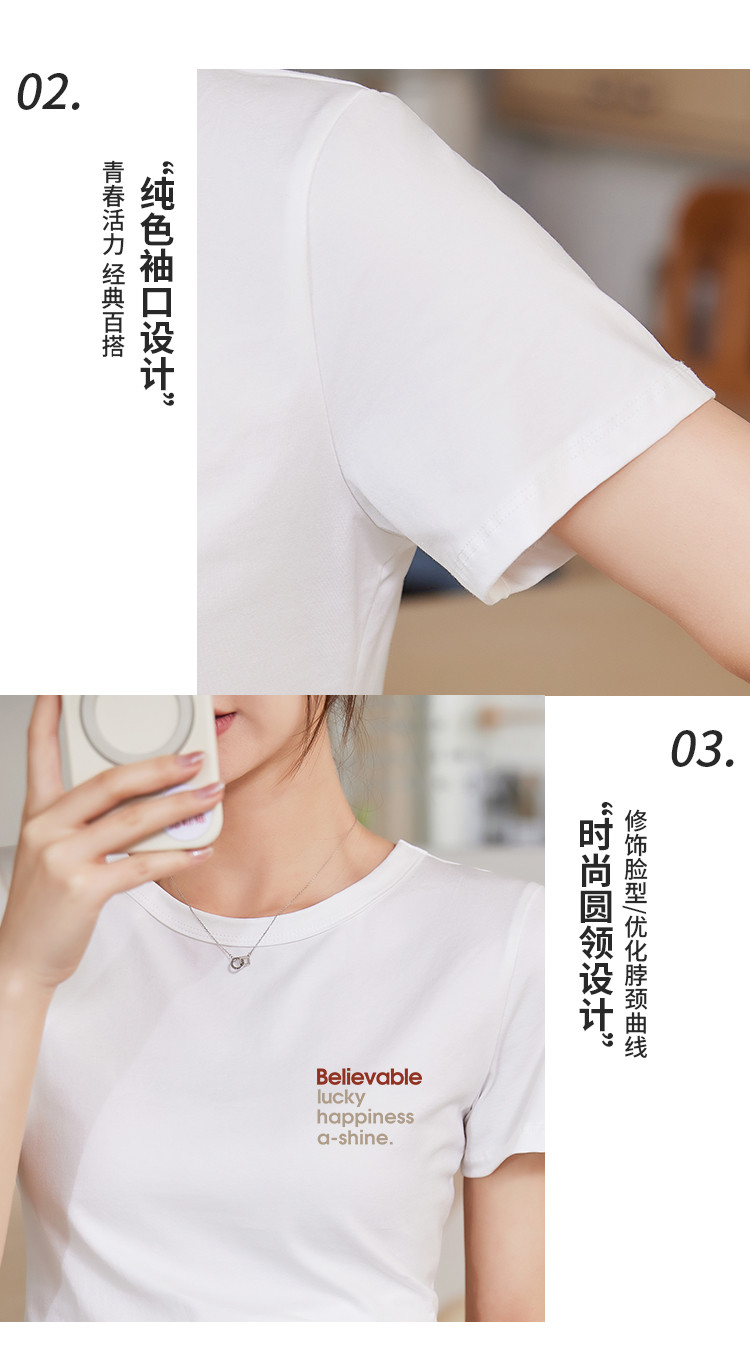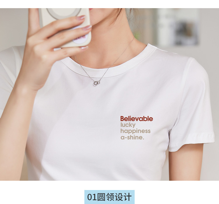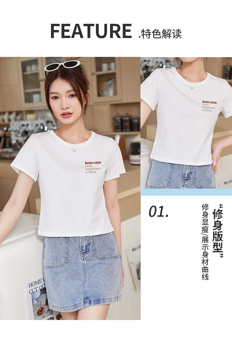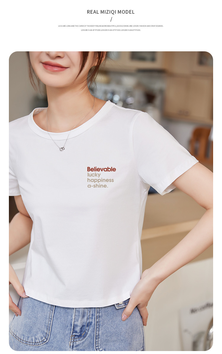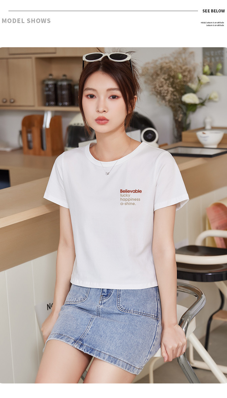商品名称:米子旗个性字母印花圆领T恤夏季女短款减龄百搭显瘦短袖上衣 540058