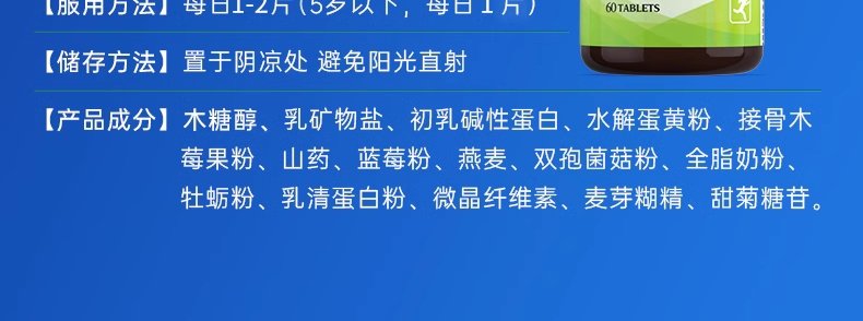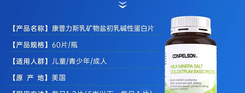 商品名称:美国 康普力斯 乳矿物盐初乳碱性蛋白片 60片