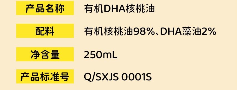 商品名称:芽芽乐 有机DHA核桃油 250mL