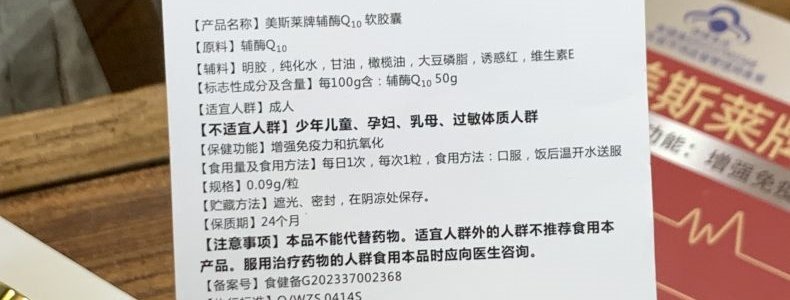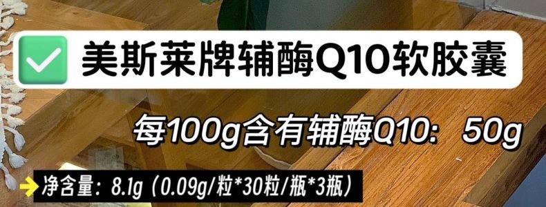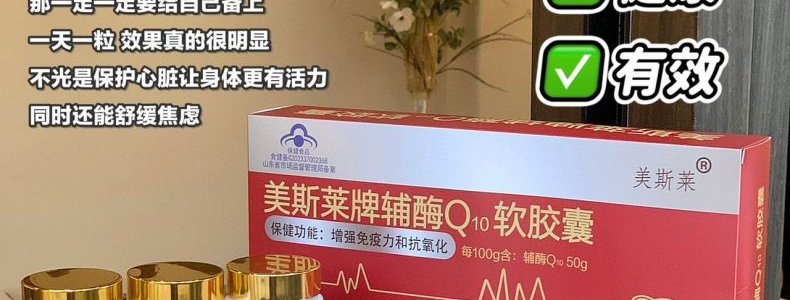 商品名称:美斯莱 辅酶Q10软胶囊 3瓶*30粒/盒