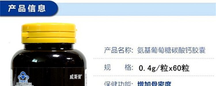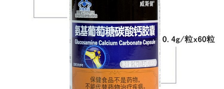 商品名称:威斯健 氨基葡萄糖碳酸钙胶囊 60粒