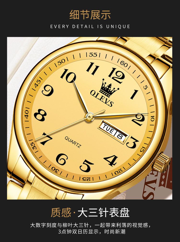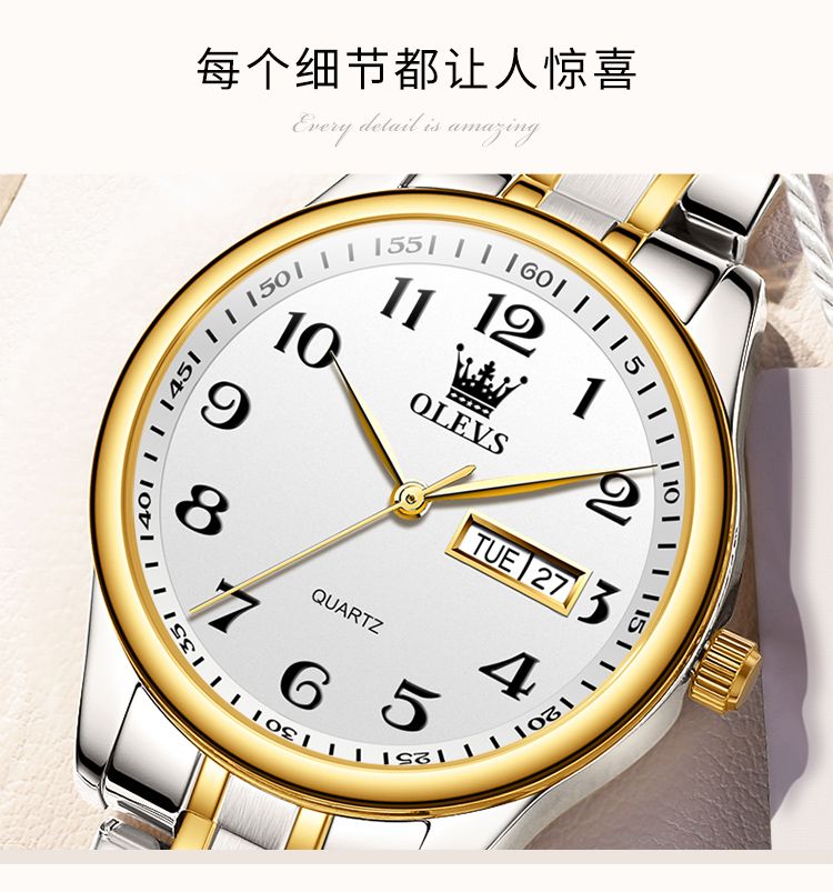 商品名称:欧利时手表原装石英机芯男士女士手表简约数字表盘气质 - 时5567