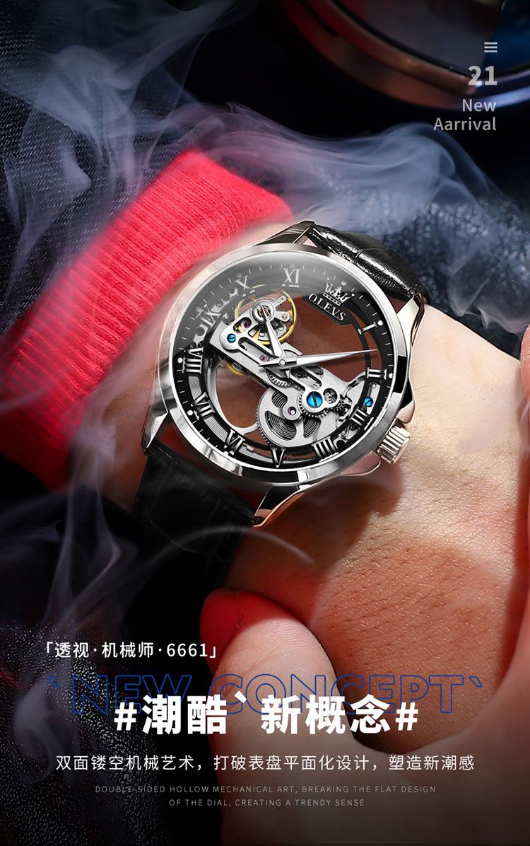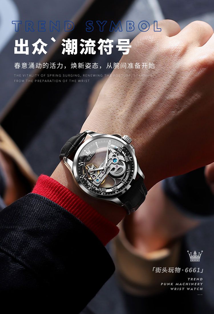 欧利时手表男士手表全自动机械表夜光防水时尚镂空男表 - 时6661