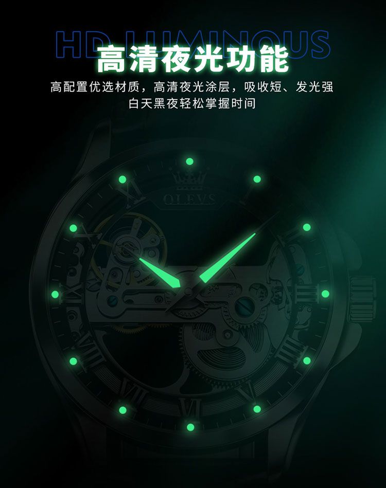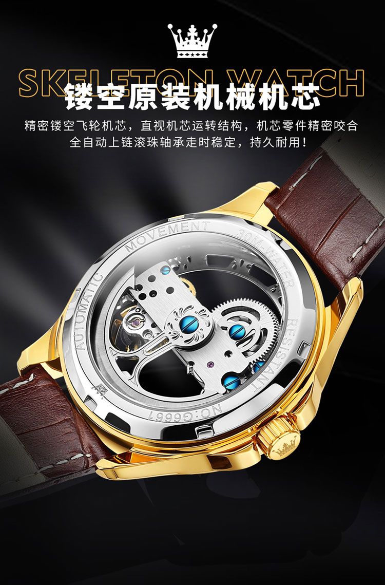 商品名称:欧利时手表男士手表全自动机械表夜光防水时尚镂空男表 - 时6661