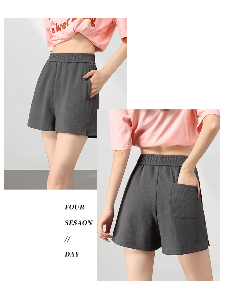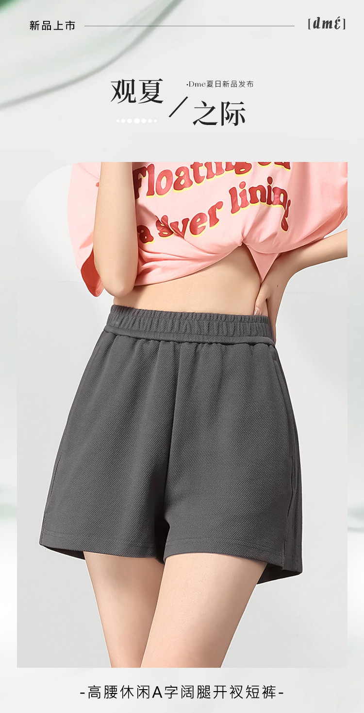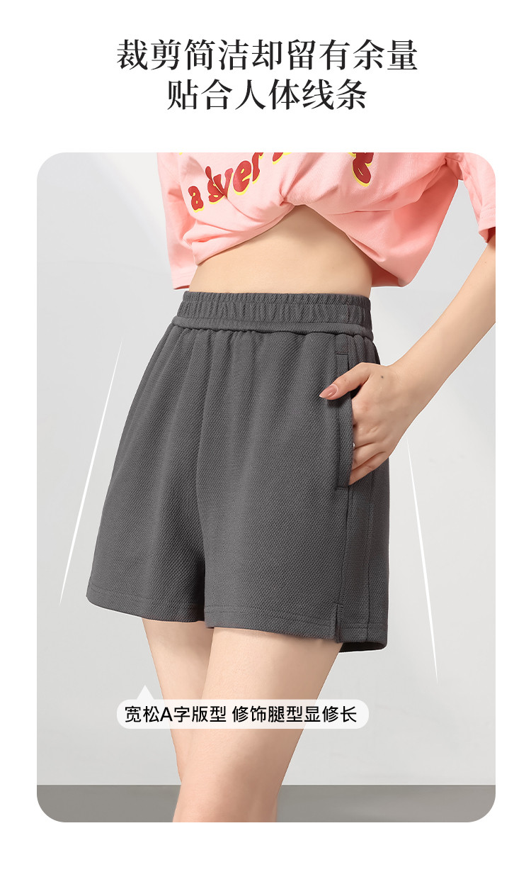 【菠萝纹肌理】极简风纯色侧开叉女款短裤运动卫裤休闲百搭阔腿裤 944385