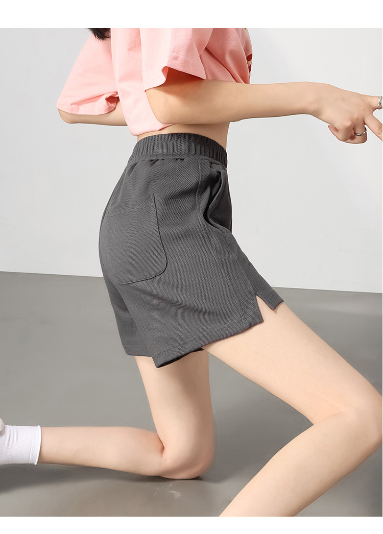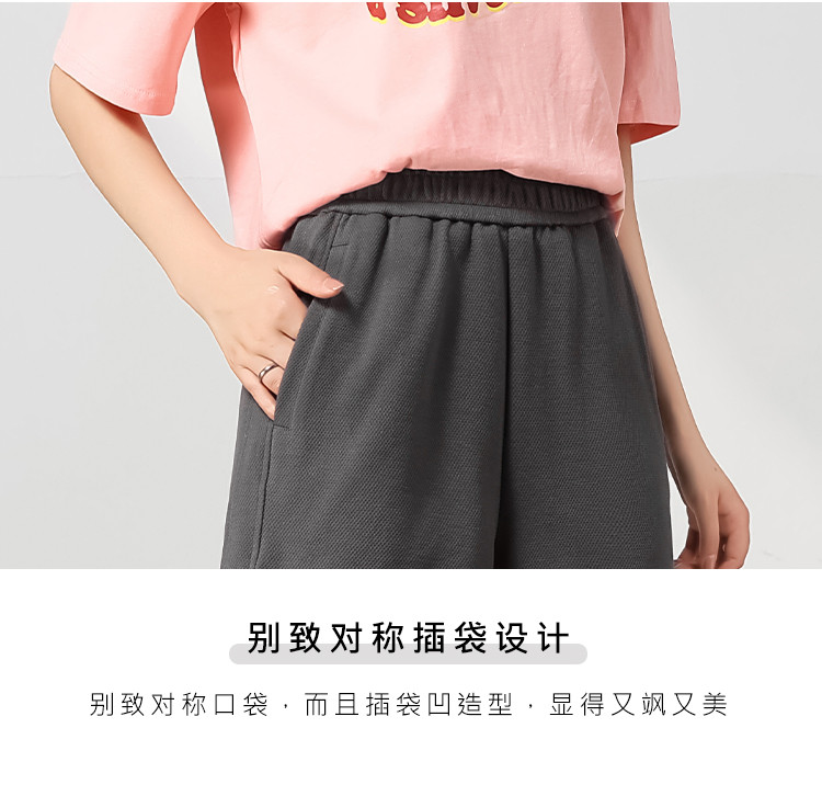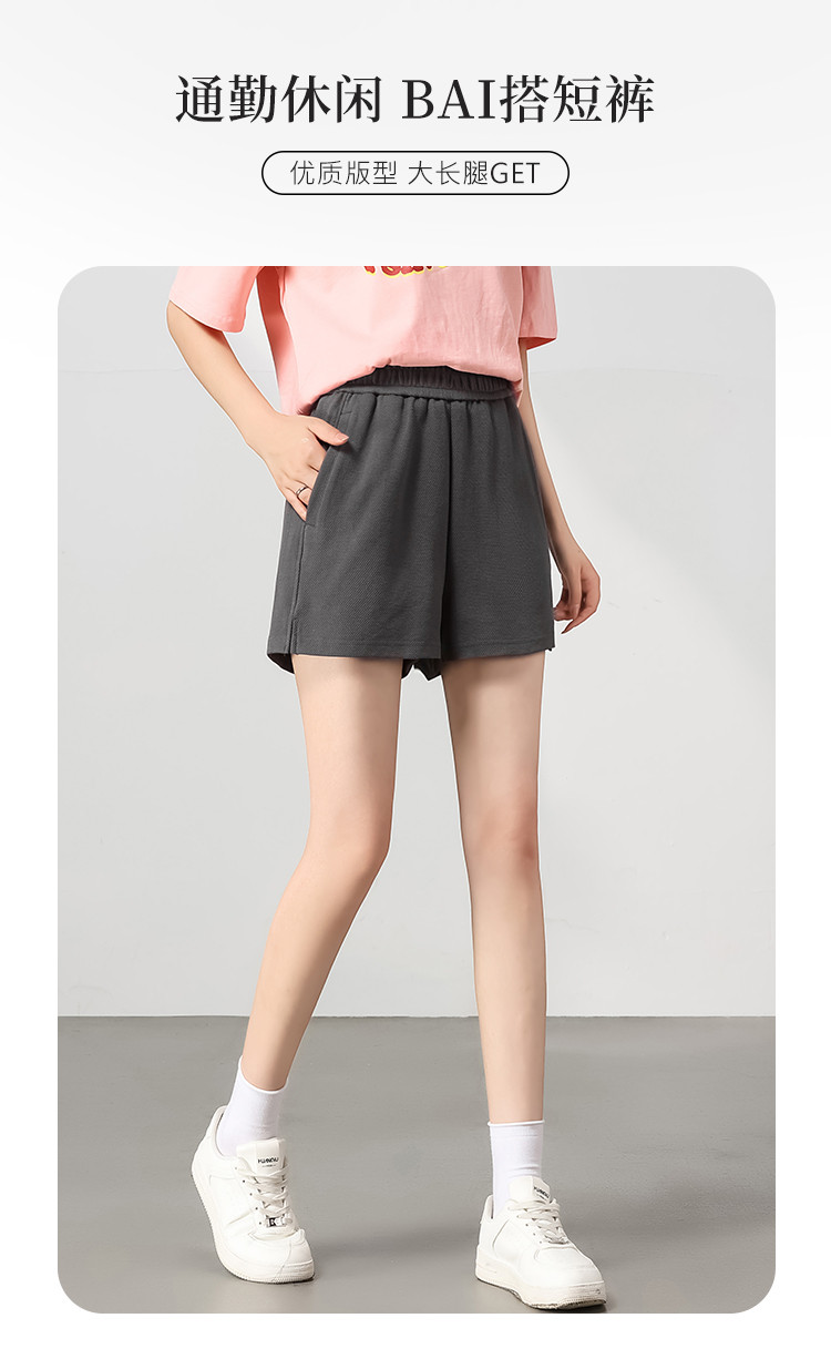 商品名称:【菠萝纹肌理】极简风纯色侧开叉女款短裤运动卫裤休闲百搭阔腿裤 944385