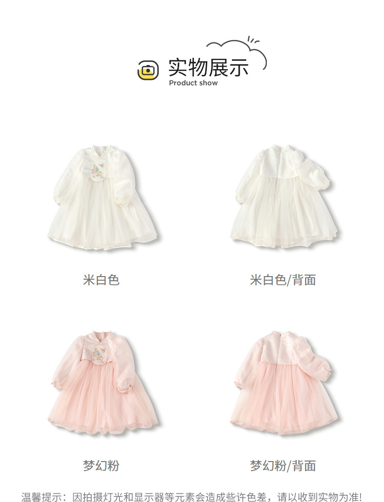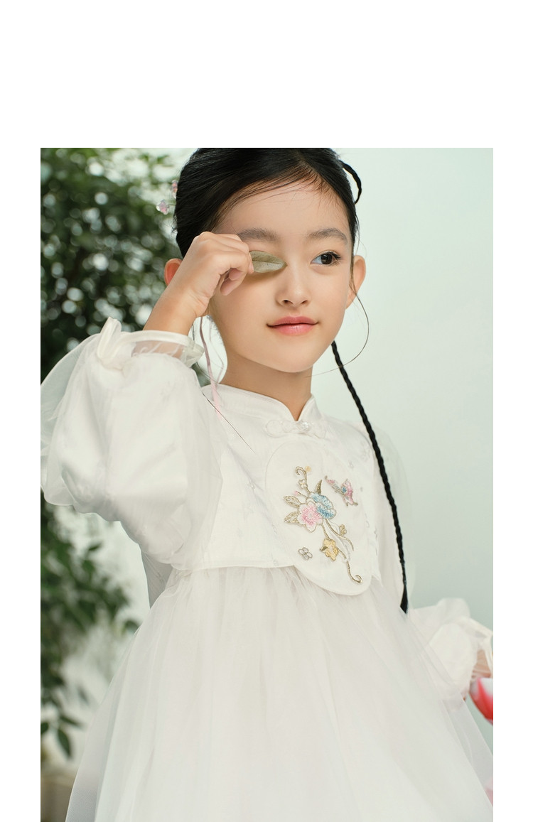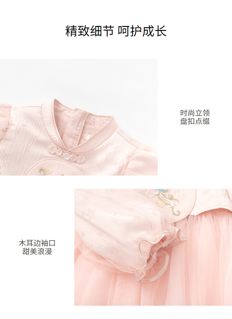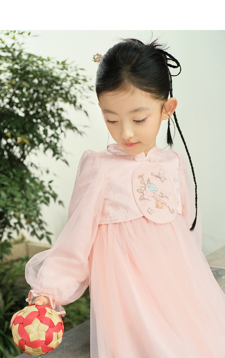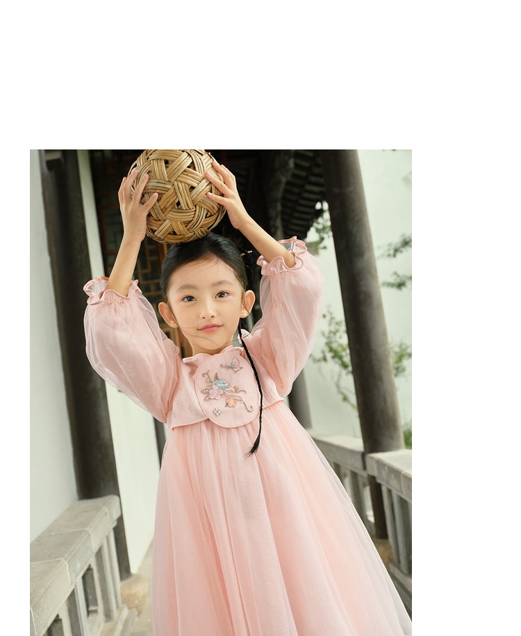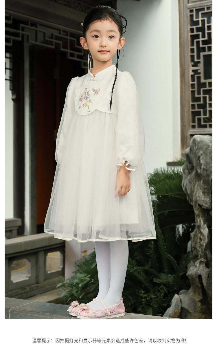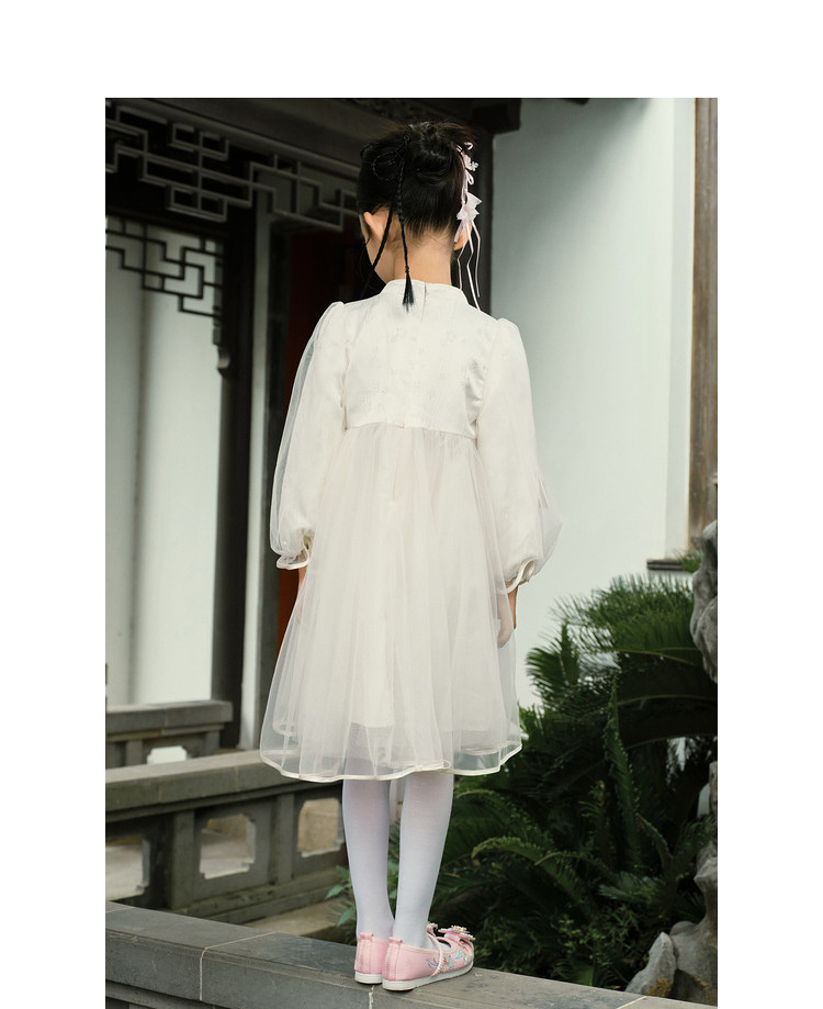 商品名称:新中式国风连衣裙汉服女童裙子儿童小童立领甜美盘扣宝宝网纱春秋 163205