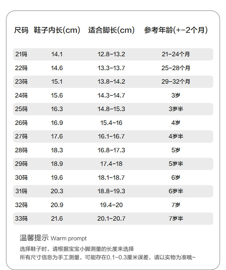 | 33码(脚长20.5/内长21.6) | 216 | 205 |
