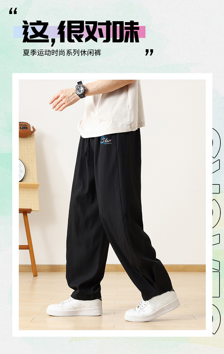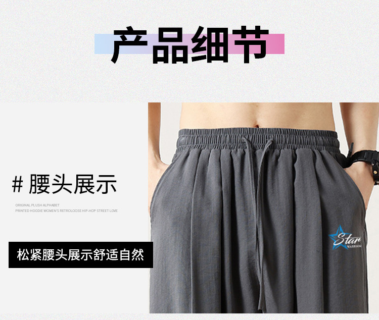 商品名称:【仿麻轻薄】运动裤男裤夏季清爽透气长裤运动裤男跑步梭织九分裤 625491