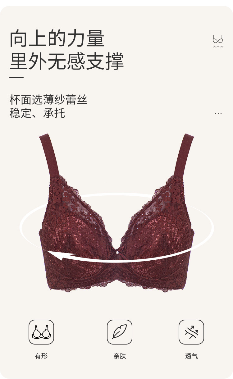 商品名称:【大胸包容】内衣轻薄聚拢不空杯侧收防下垂性感蕾丝文胸罩女 069387