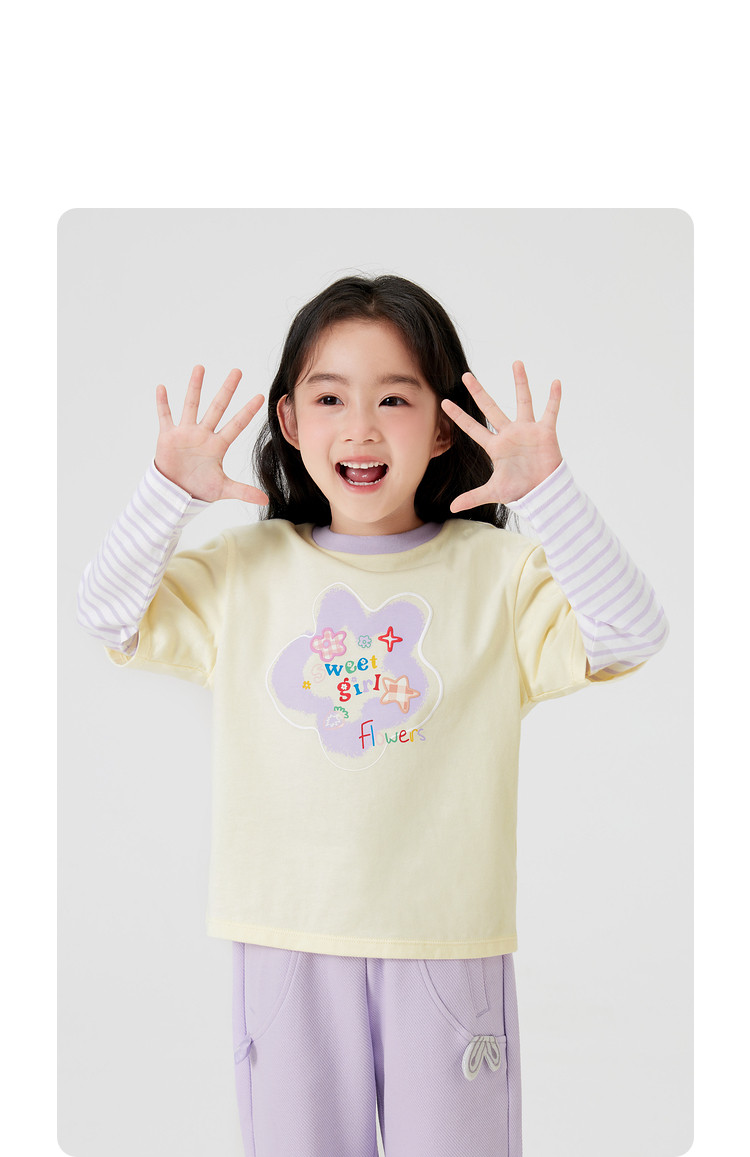 纯棉假两件儿童上衣女童长袖T恤春秋保暖打底衫撞色 920005