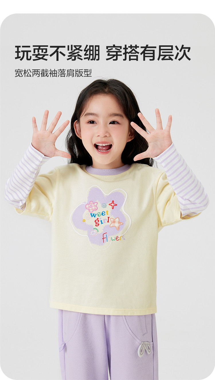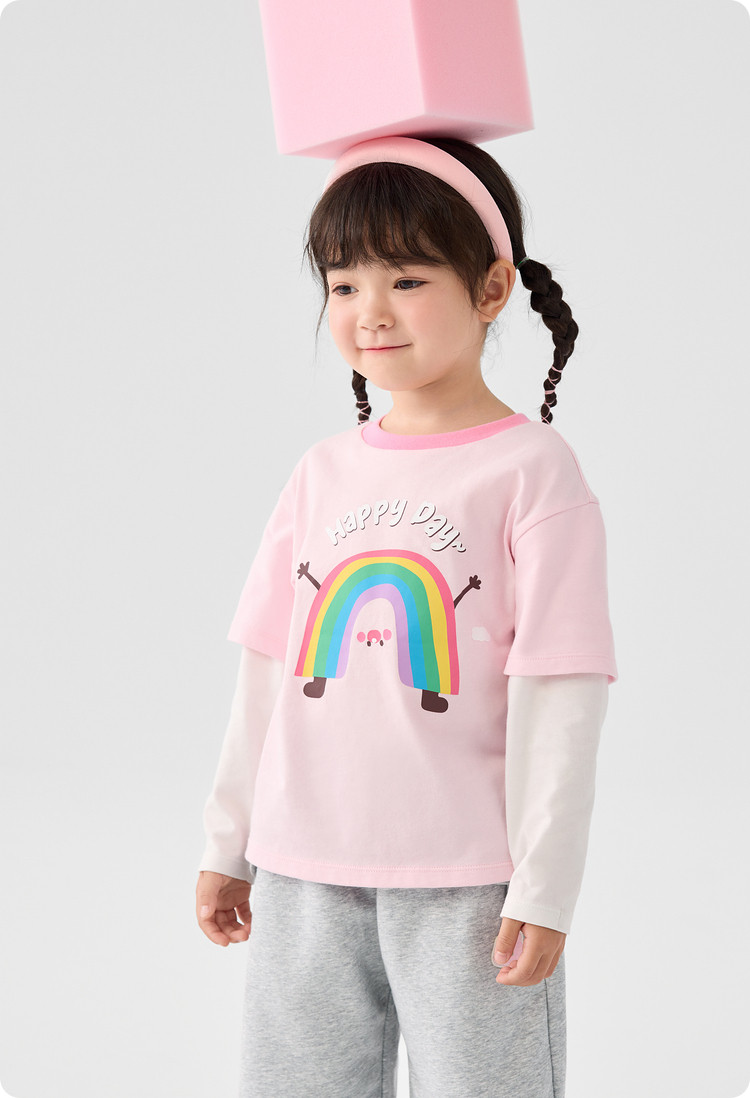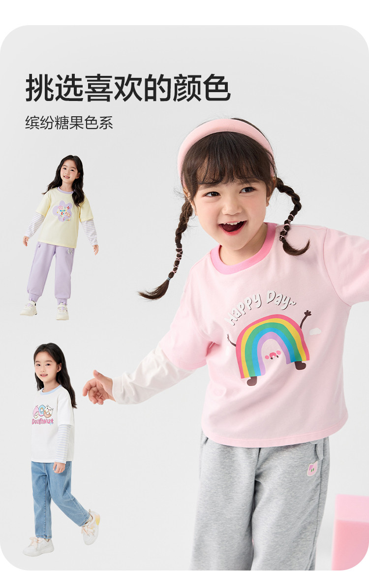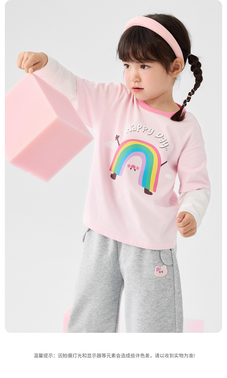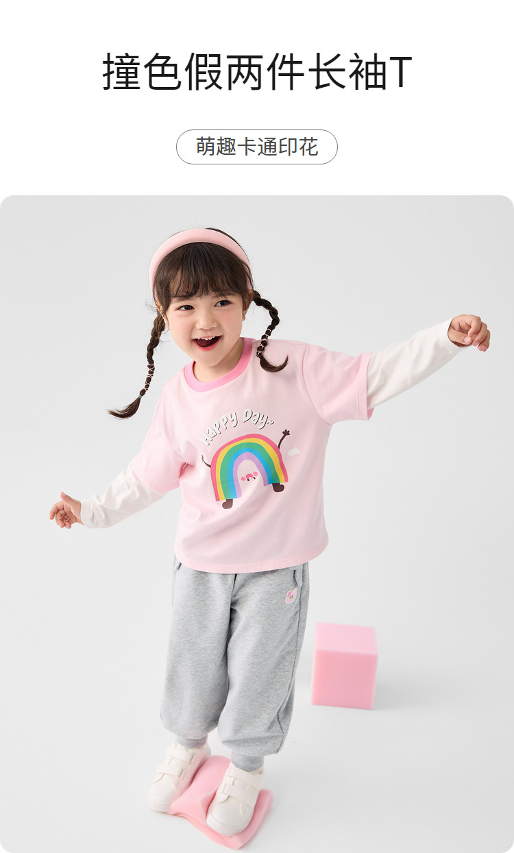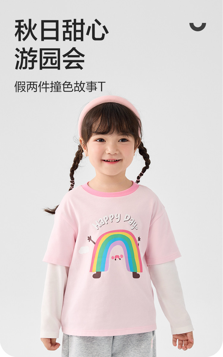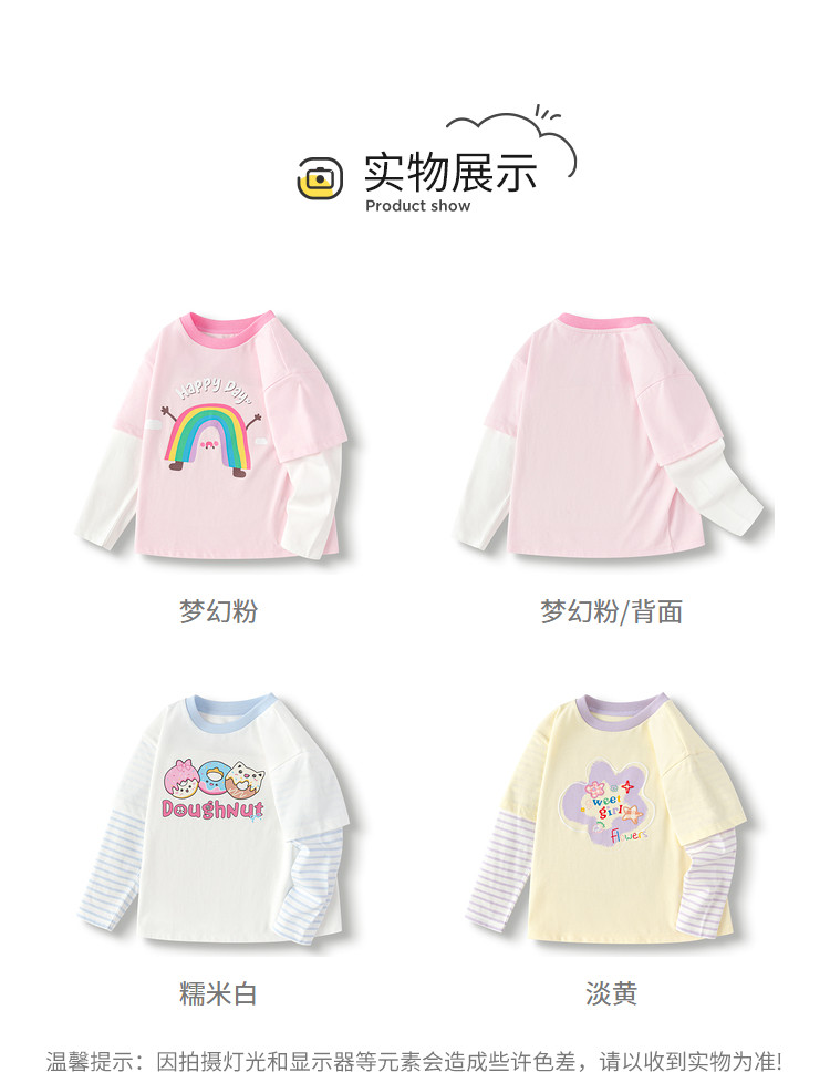 商品名称:纯棉假两件儿童上衣女童长袖T恤春秋保暖打底衫撞色 920005