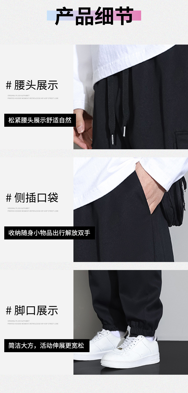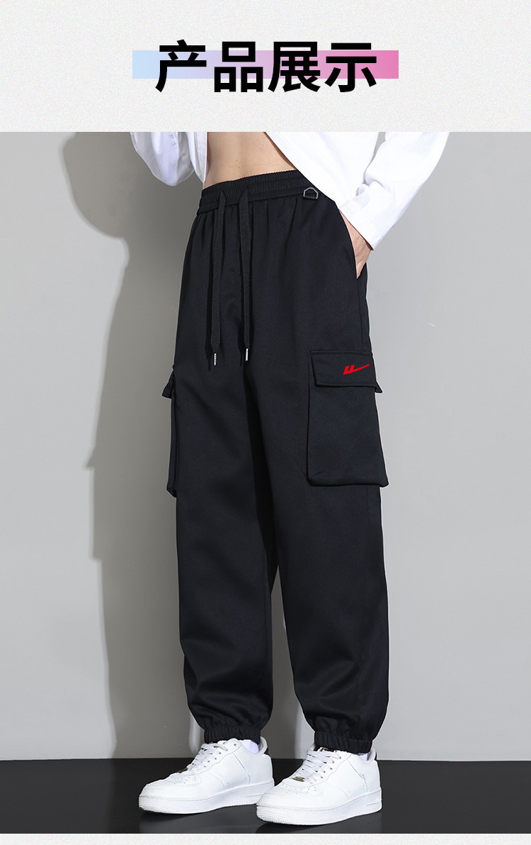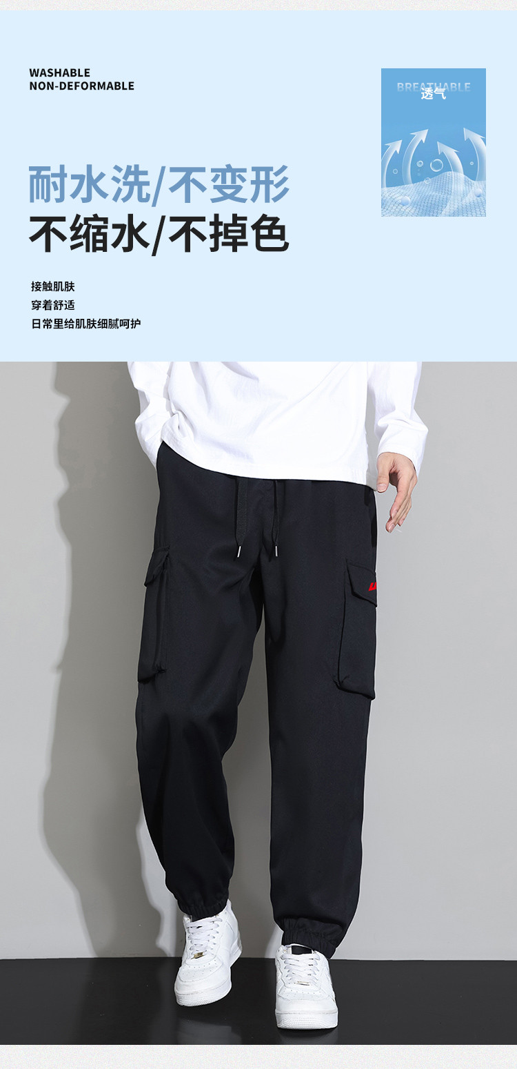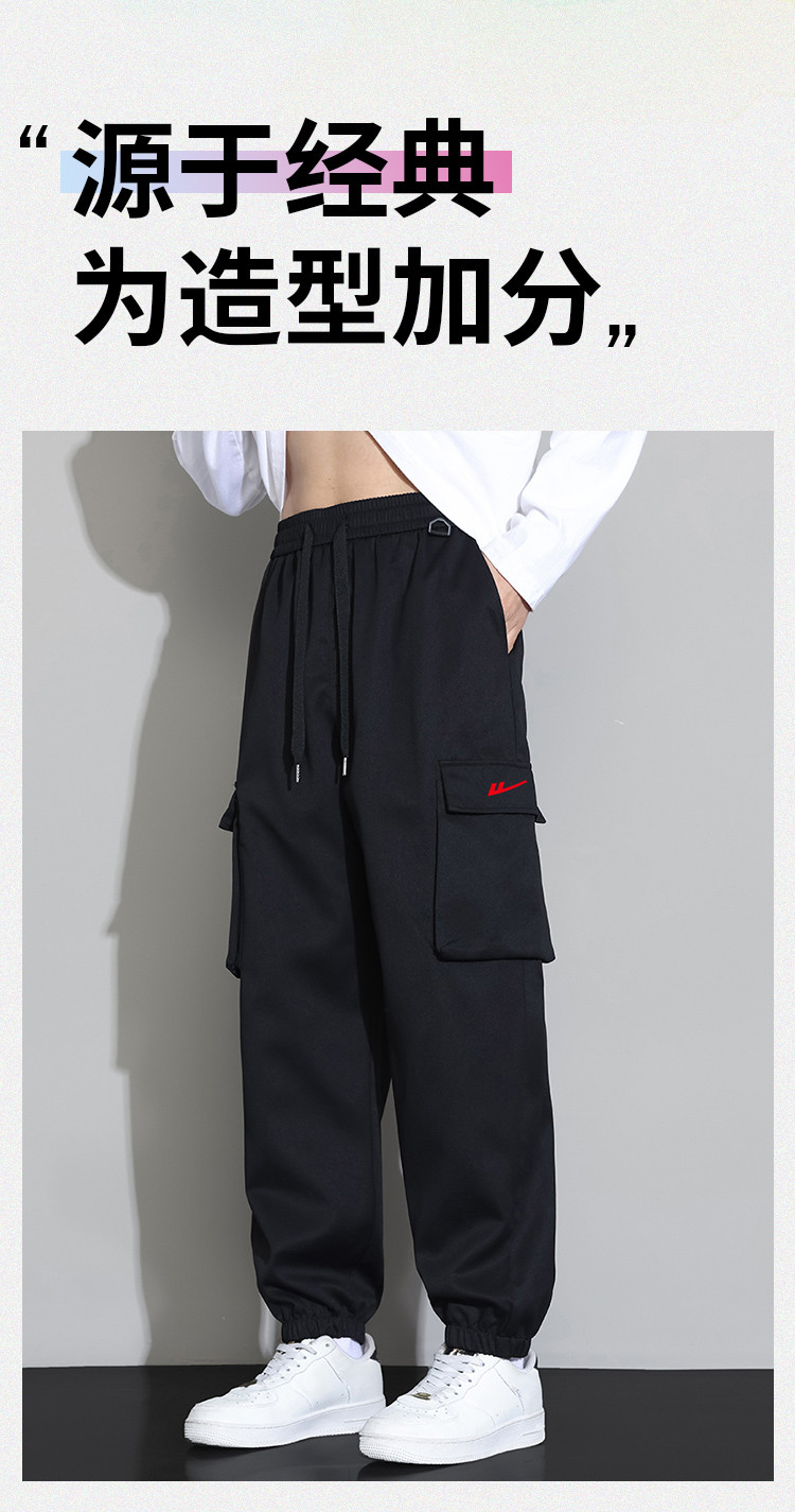 商品名称:夏季大口袋美式工装裤女小个子显高宽松百搭抽绳束脚运动休闲长裤 160083