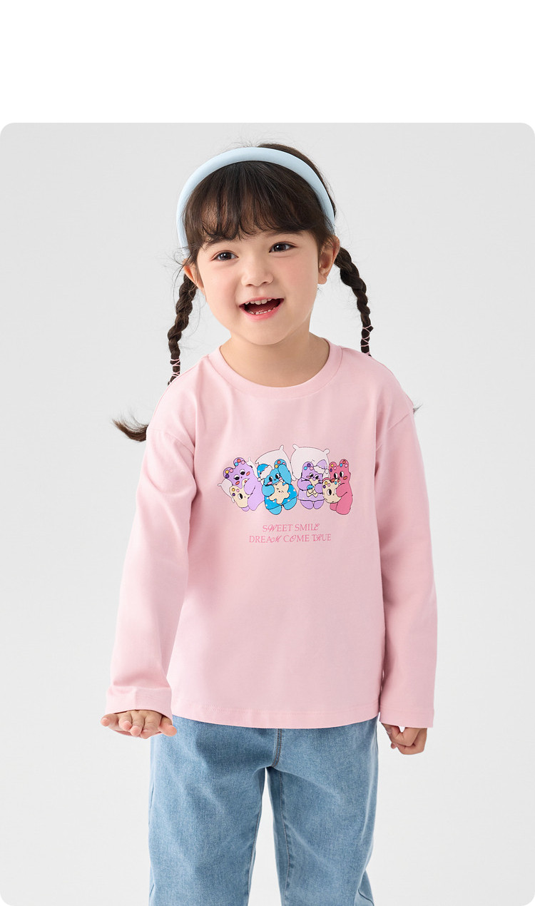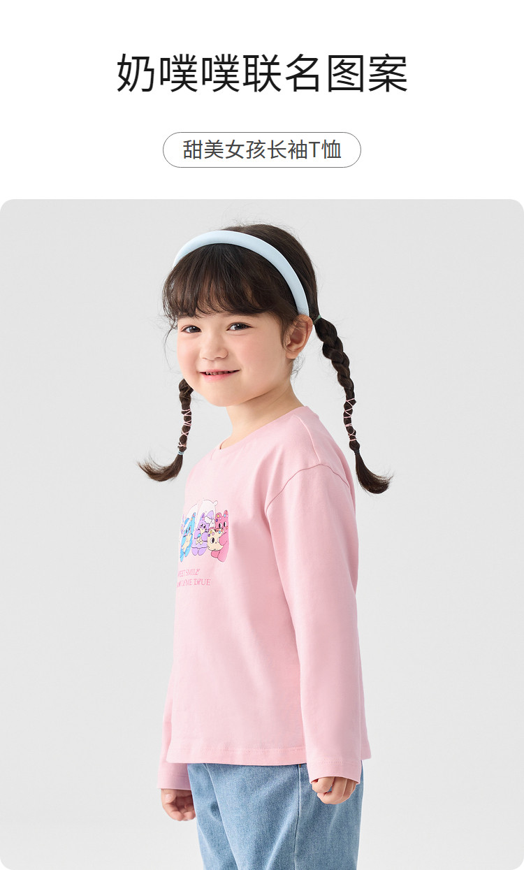 奶噗噗IP纯棉上衣儿童长袖T恤秋装女小童保暖打底上衣 917765