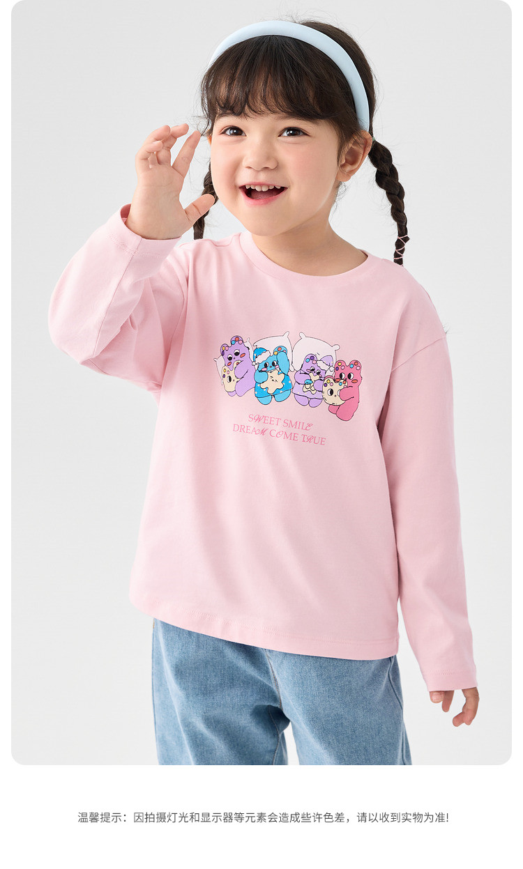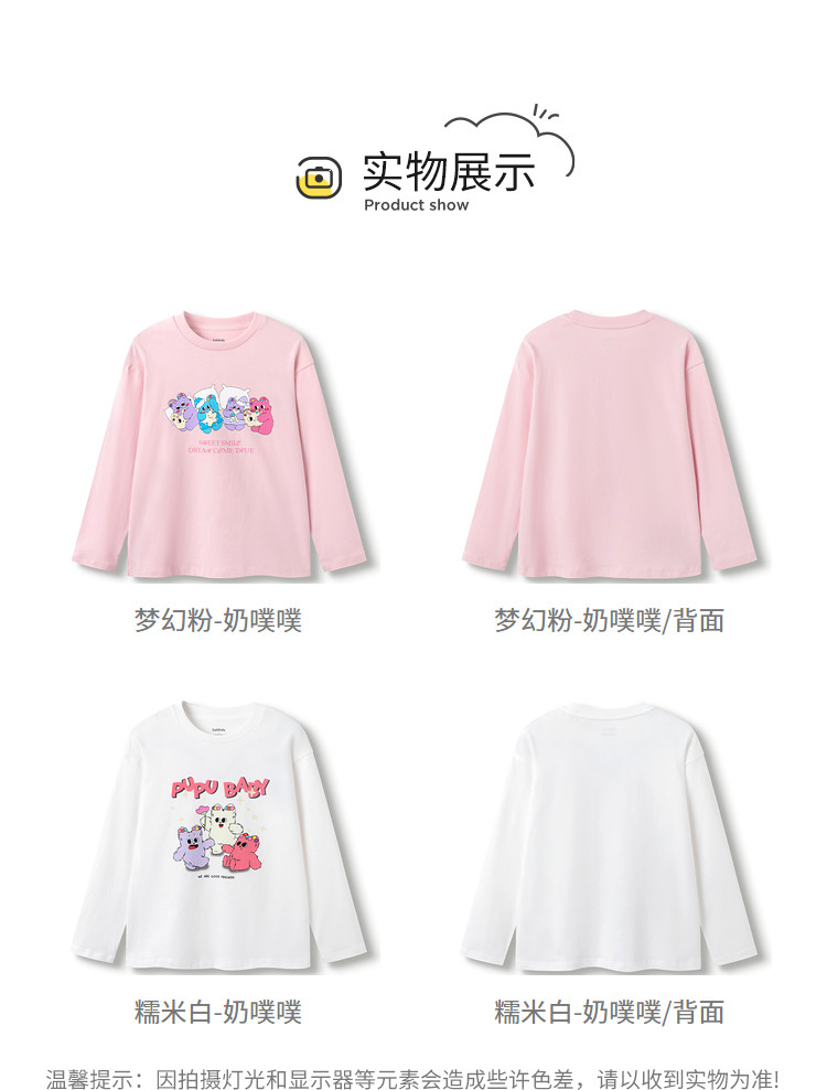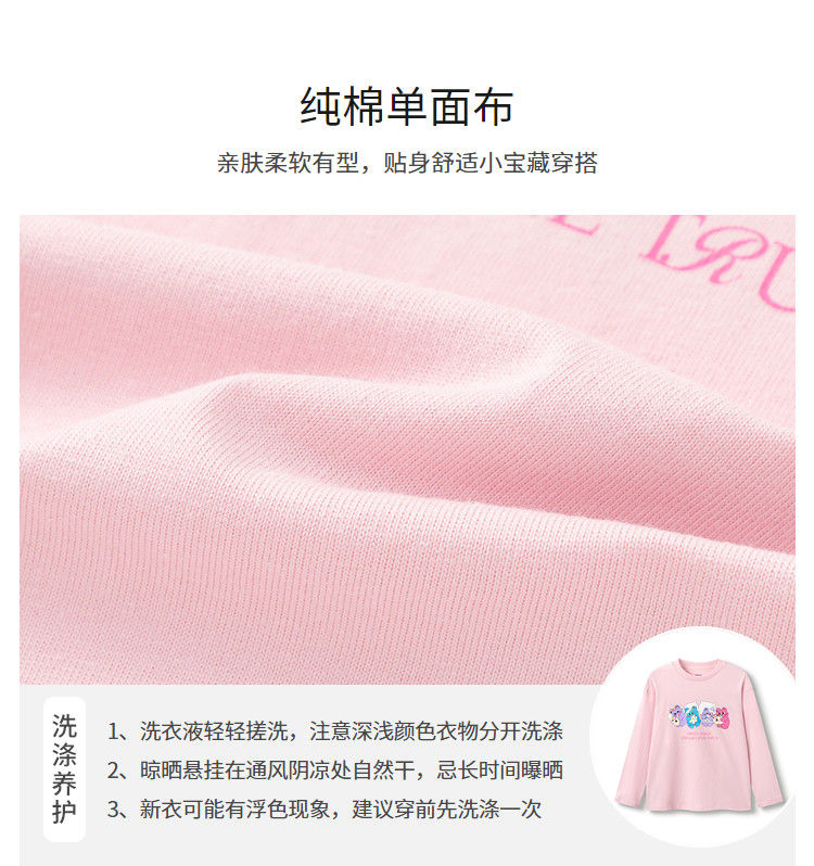 商品名称:奶噗噗IP纯棉上衣儿童长袖T恤秋装女小童保暖打底上衣 917765