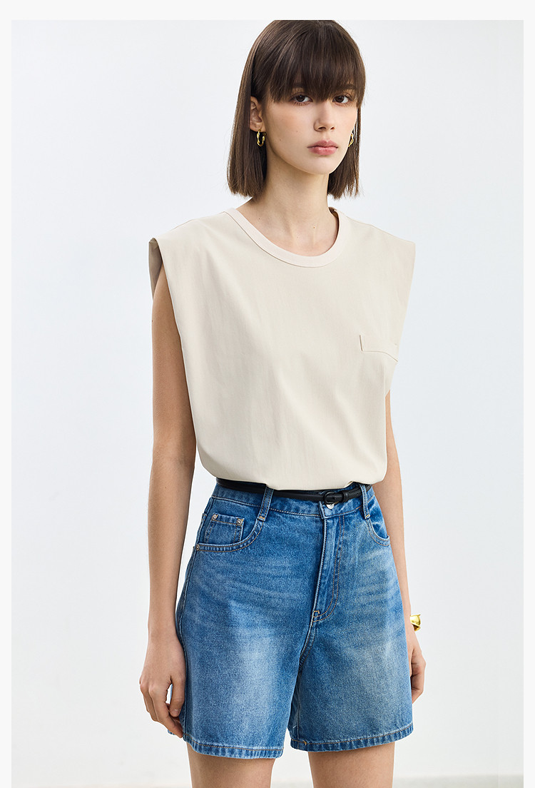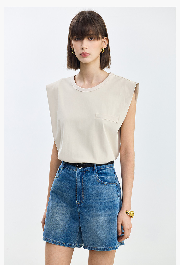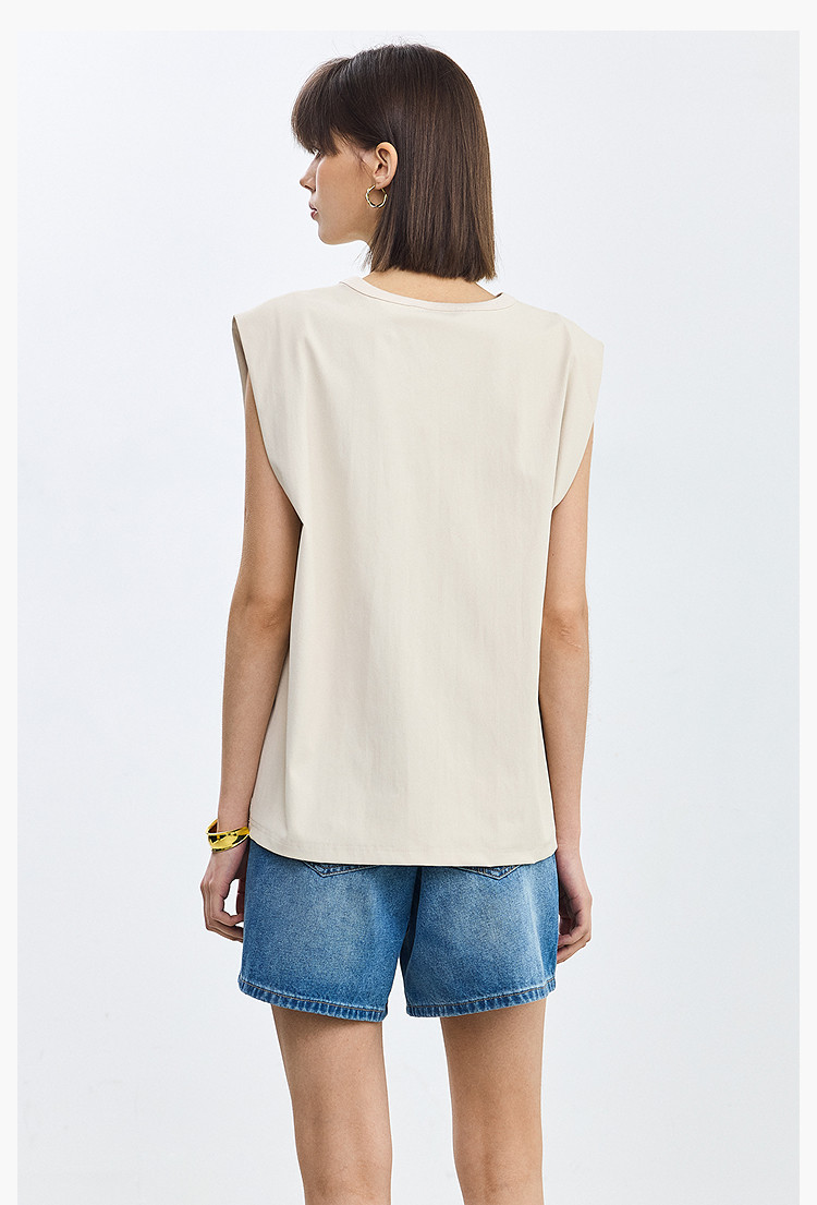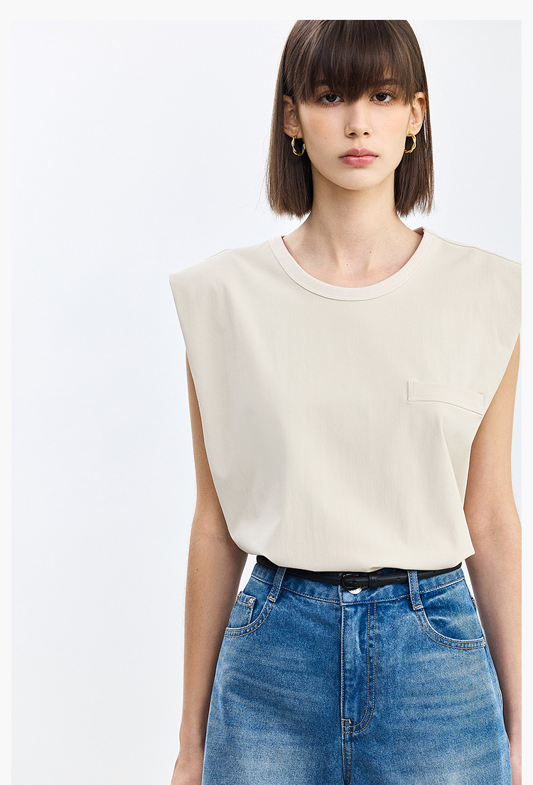 夏季美式复古休闲通勤款时尚百搭无袖T恤打底衫女 008539
