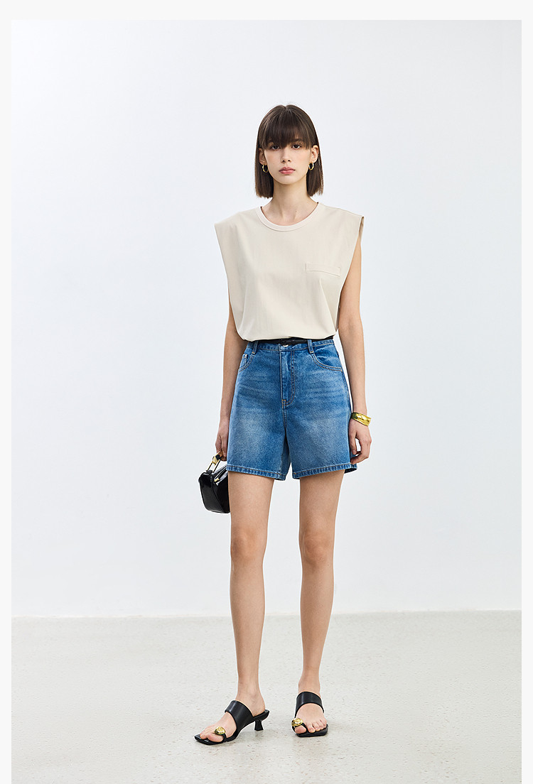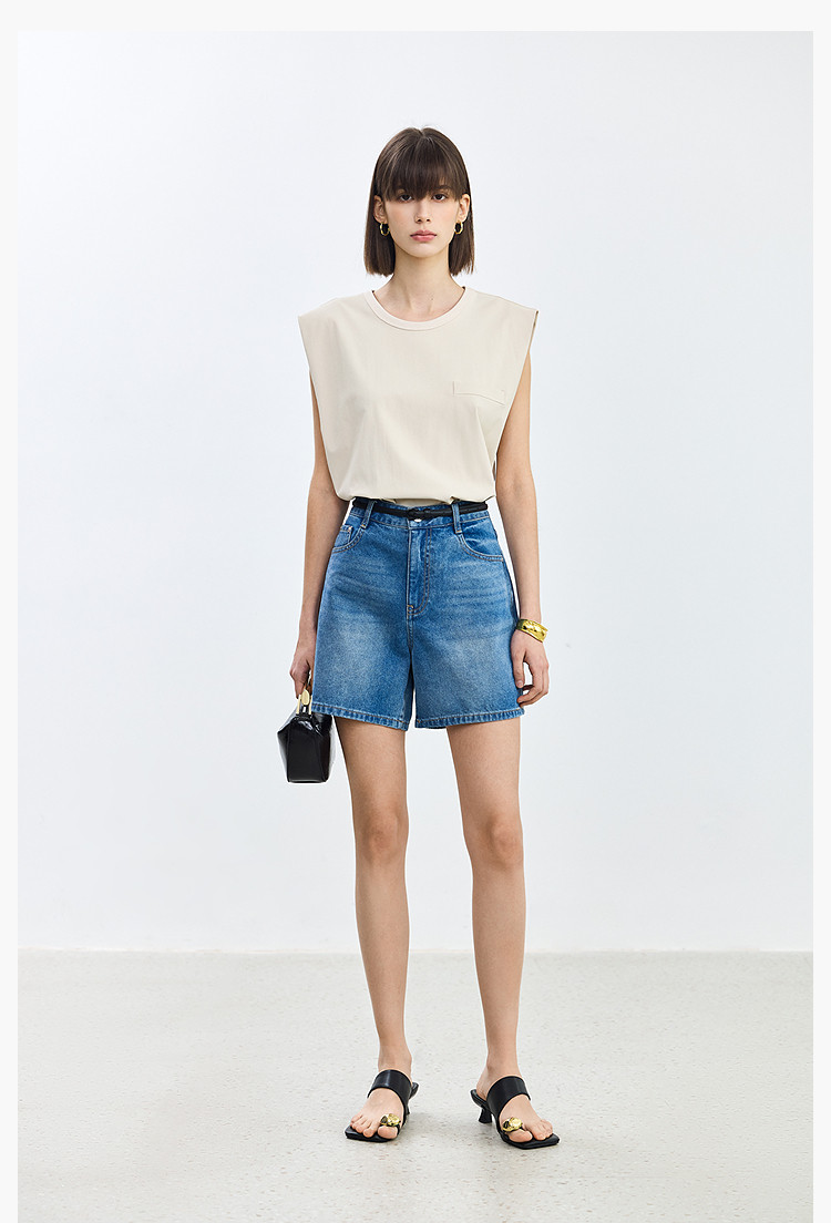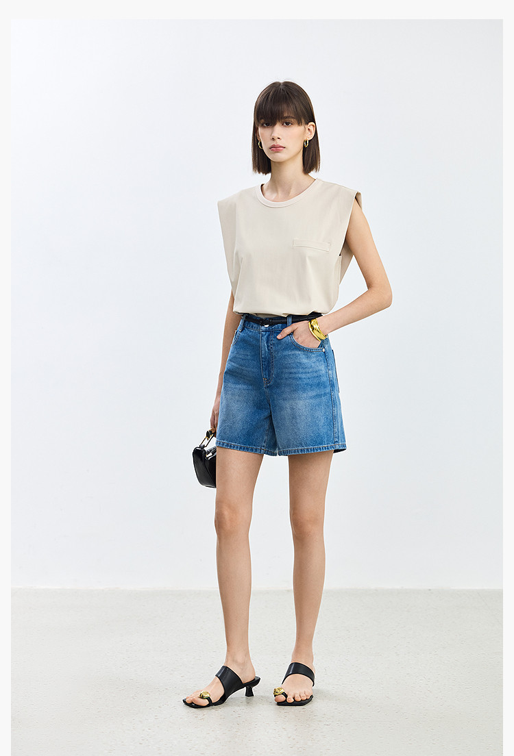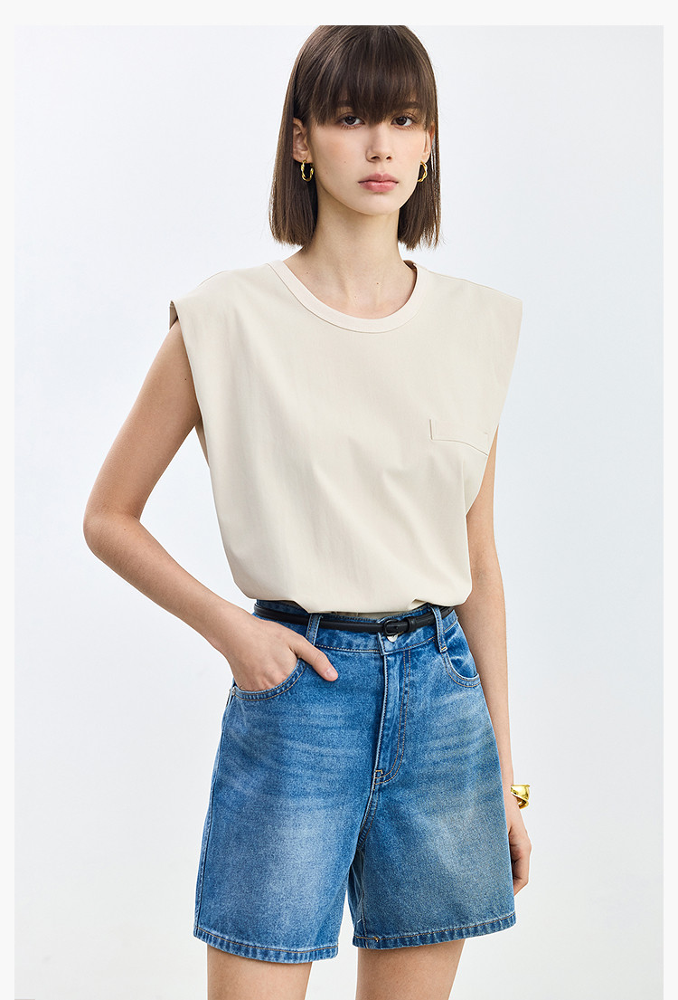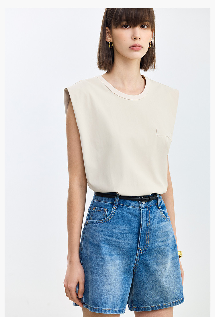夏季美式复古休闲通勤款时尚百搭无袖T恤打底衫女 008539