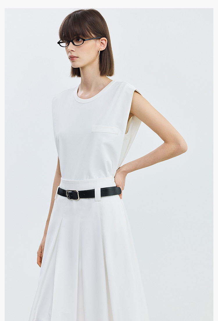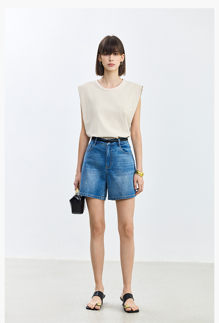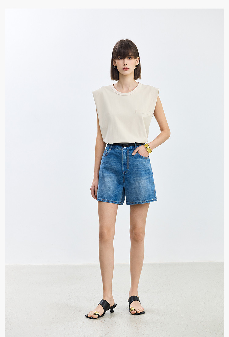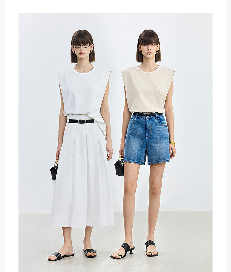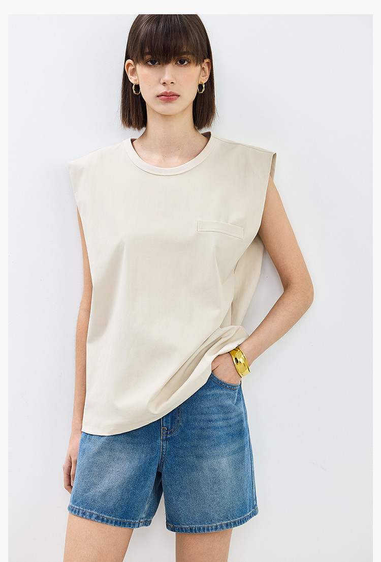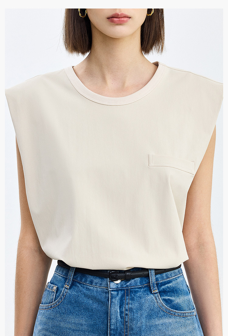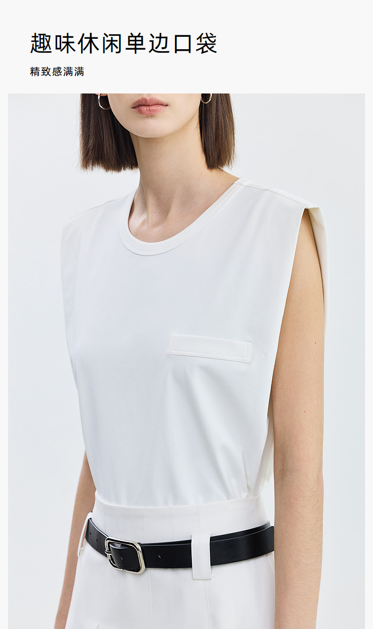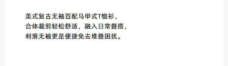 商品名称:夏季美式复古休闲通勤款时尚百搭无袖T恤打底衫女 008539