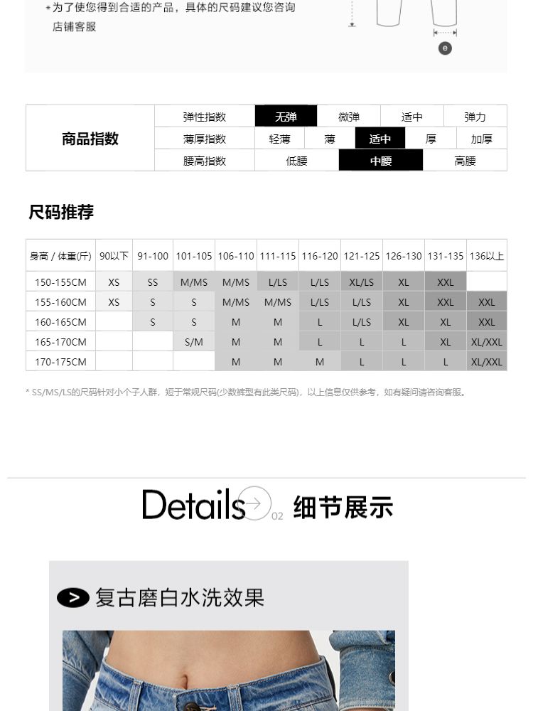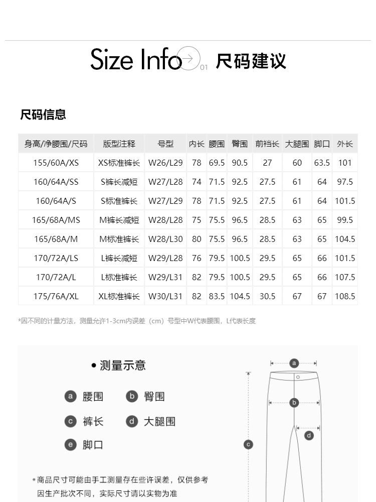 | XS(标准裤长) | 60 | 69.5 | 101 | 90.5 | 155/60A |