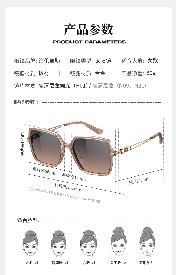 商品名称:海伦凯勒时尚优雅墨镜女显脸小防紫外线太阳镜 695707