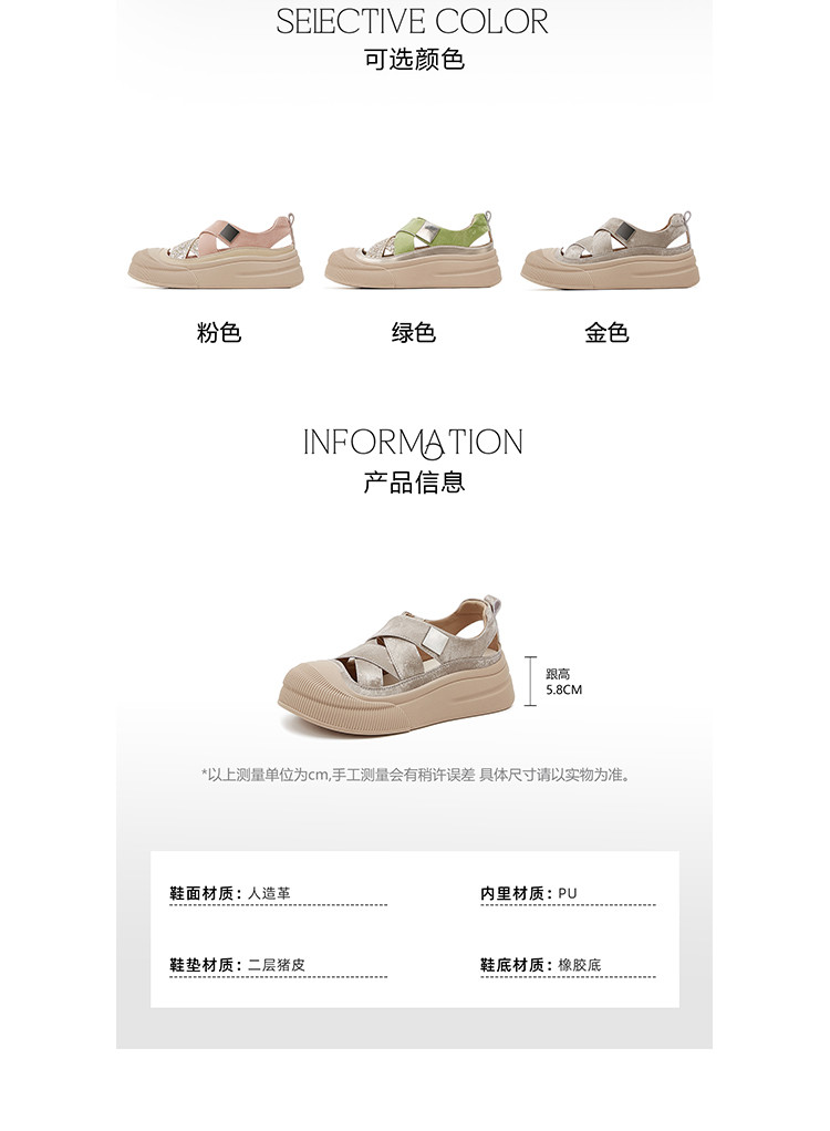 商品名称:夏季镂空运动凉鞋女透气薄款时尚板鞋百搭厚底鞋轻便运动休闲鞋女 784215
