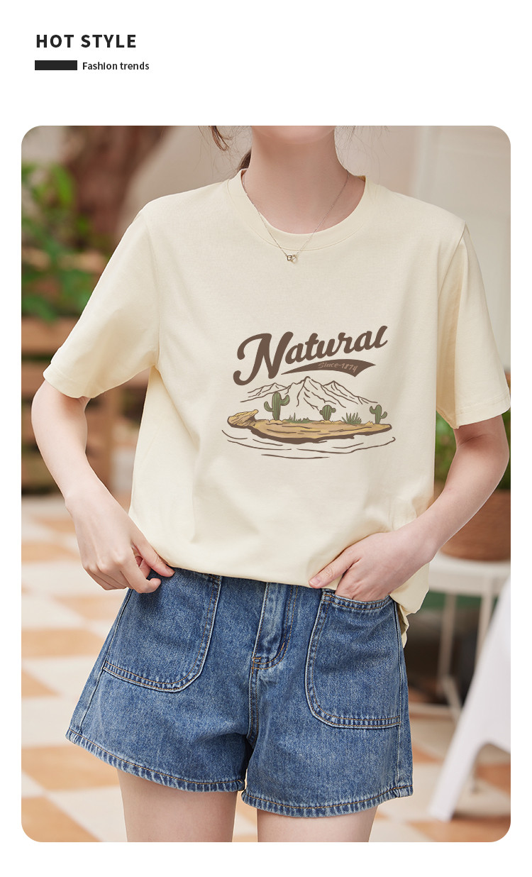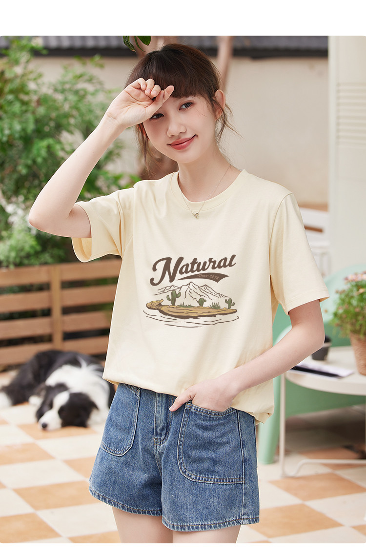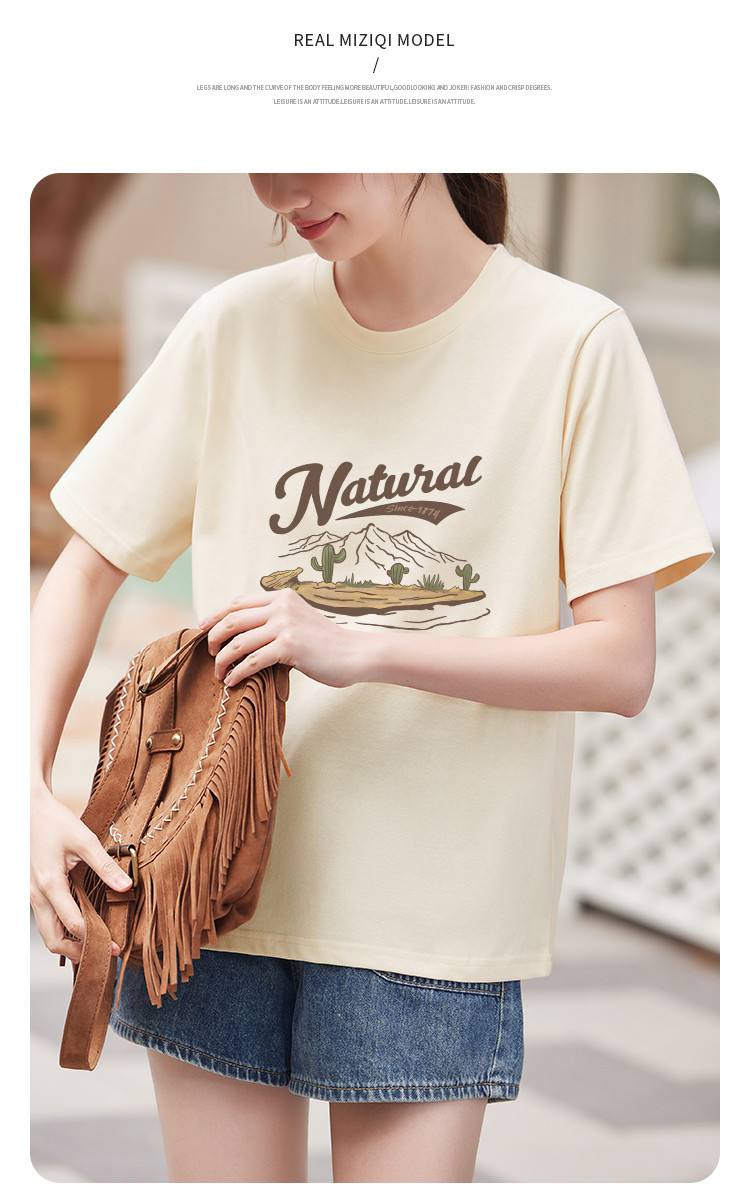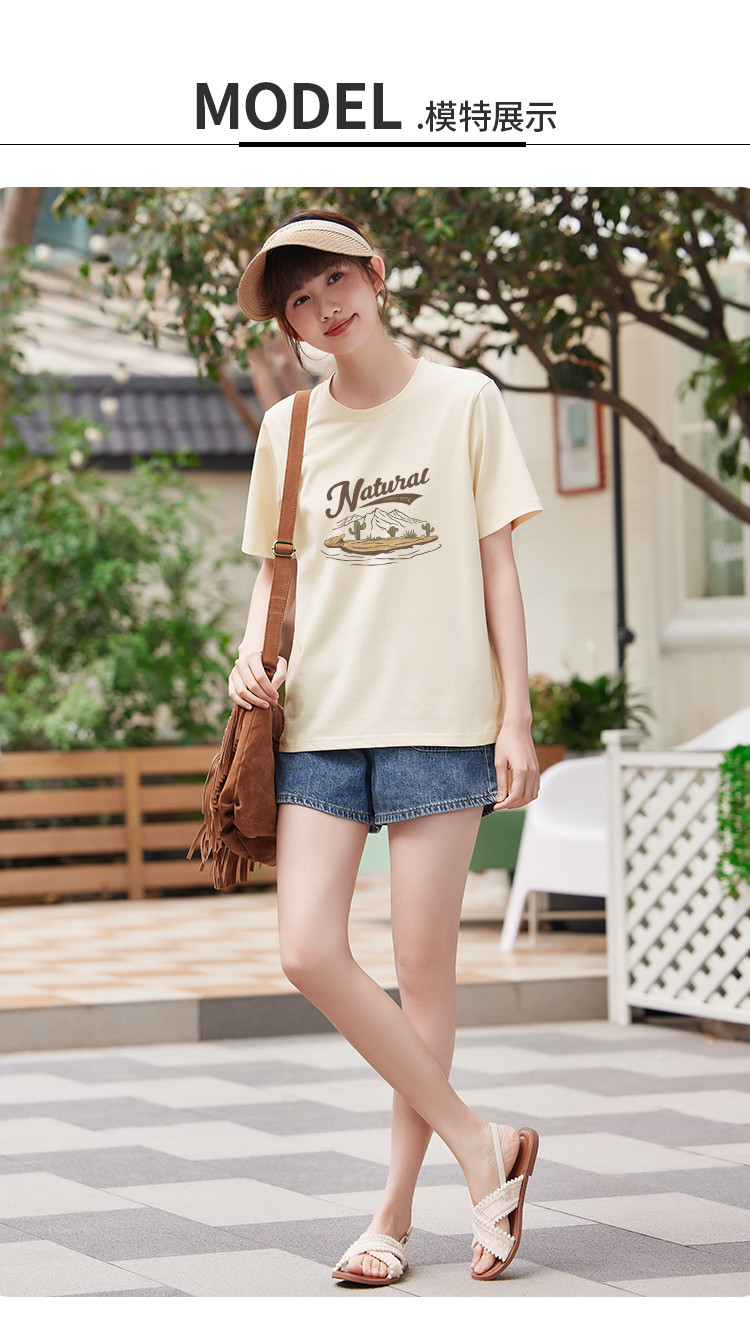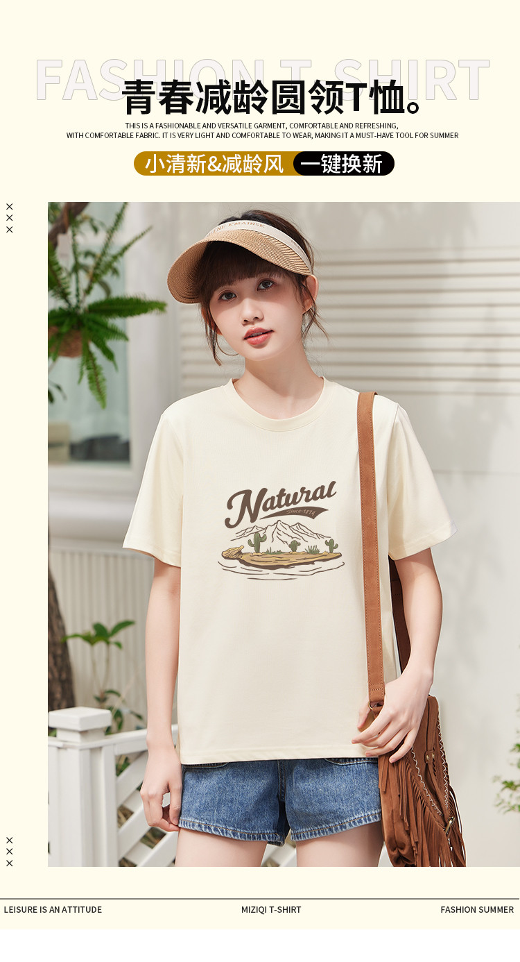 商品名称:米子旗个性创意印花圆领T恤夏季女减龄舒适小个子短袖上衣 097562