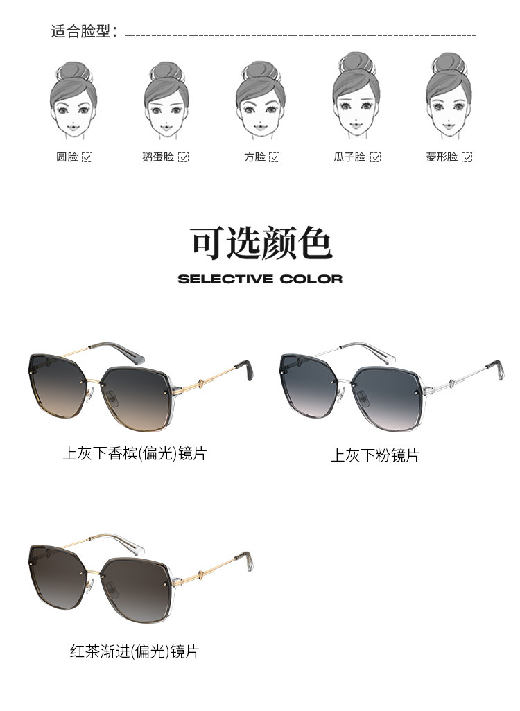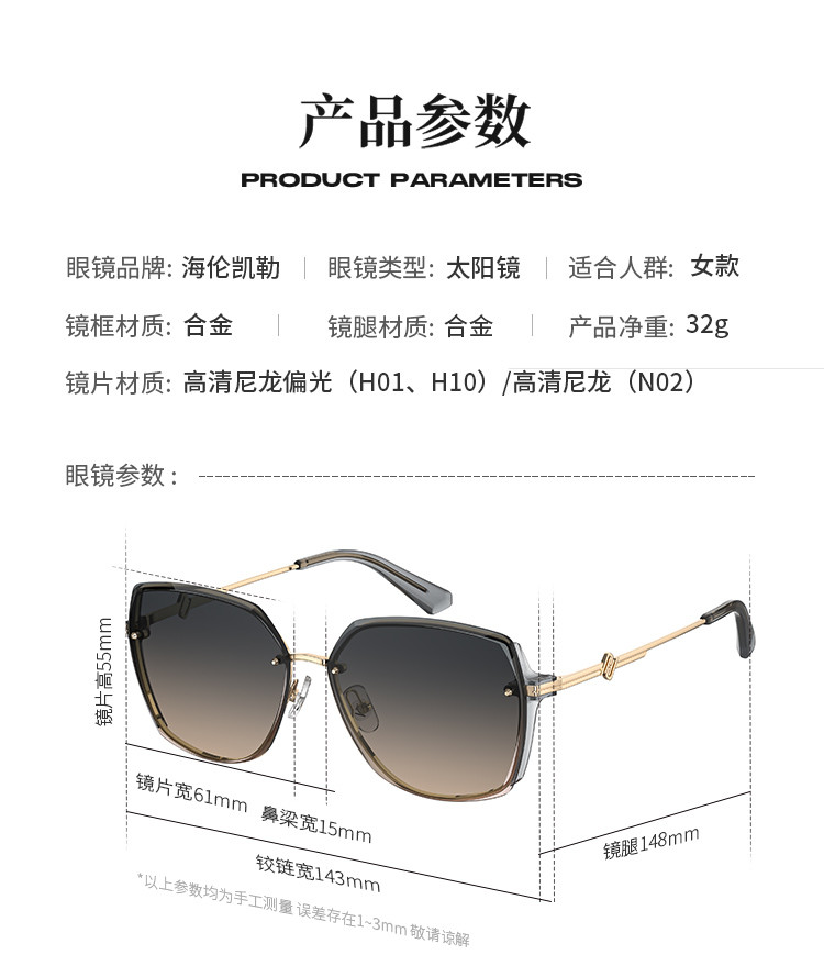商品名称:海伦凯勒墨镜女优雅复古显瘦潮流太阳镜防紫外线女 106395
