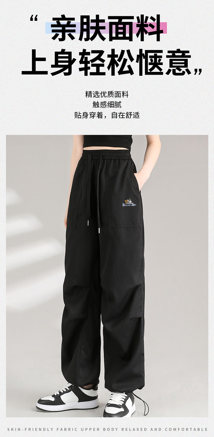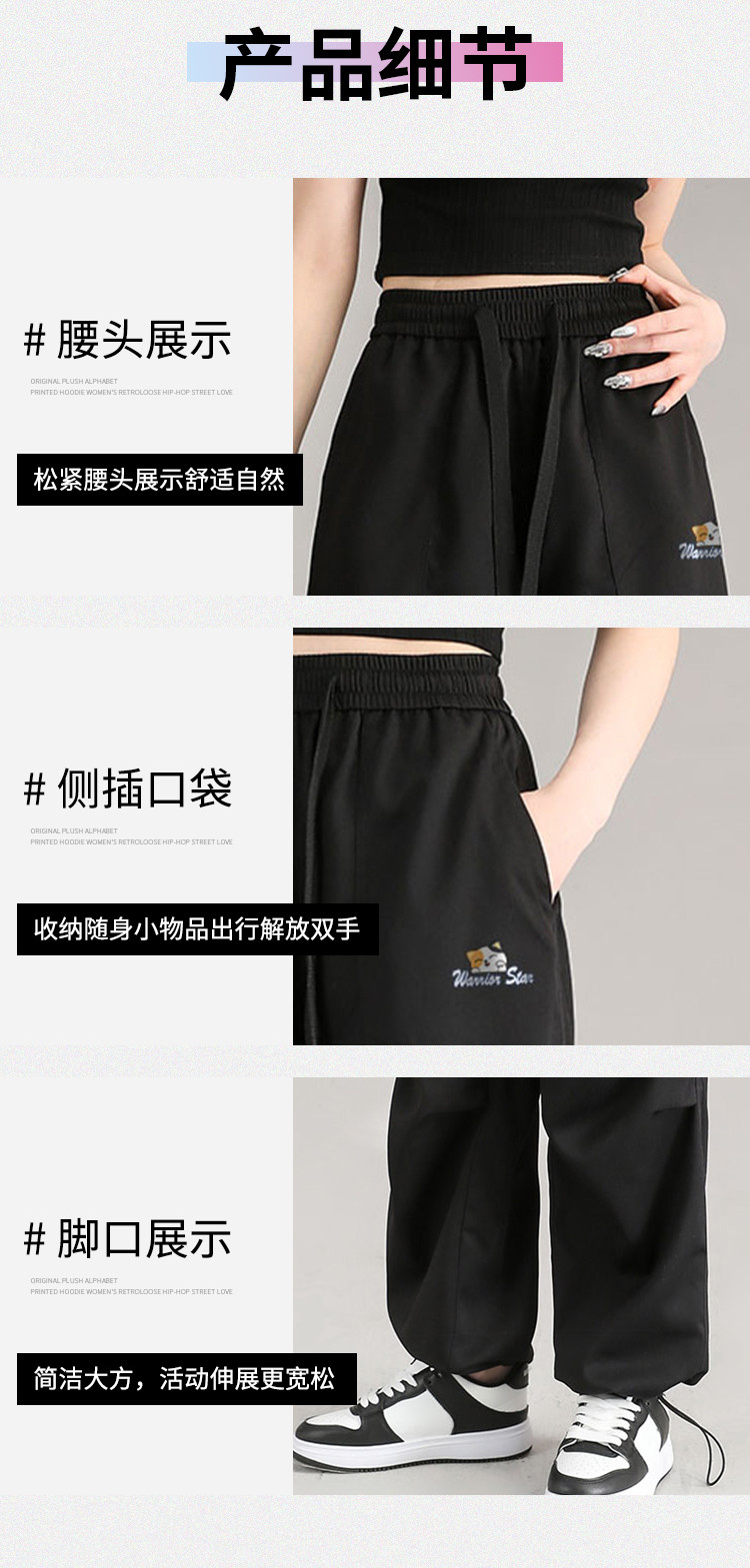 商品名称:四季款工装裤子女式抽绳束脚直筒两穿美式显瘦复古户外运动休闲裤 221523