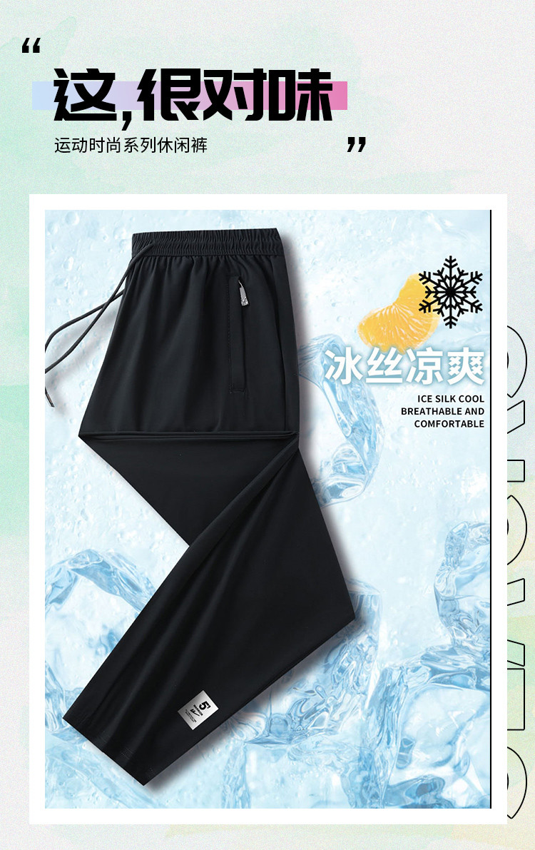 商品名称:【冰丝透气】夏季薄款大码裤子男宽松运动九分空调裤男士束脚长裤 915923