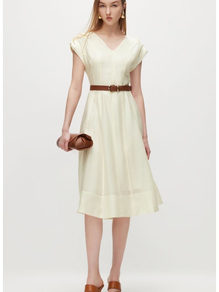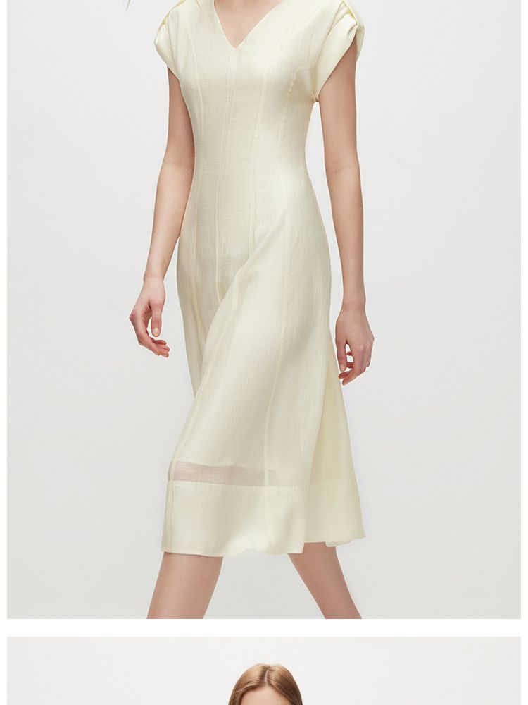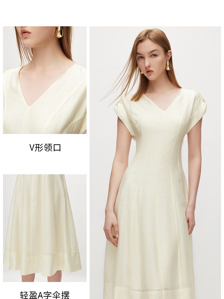 商品名称:【休闲百搭】夏季V领中长款A字修身连衣裙女 555034