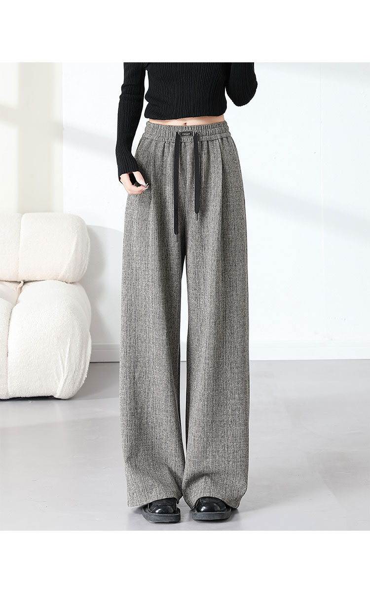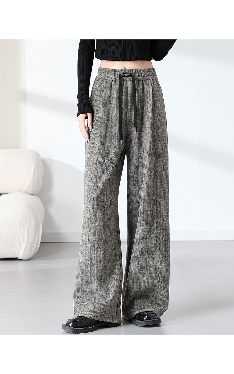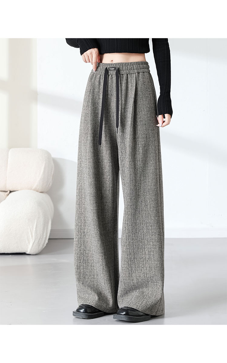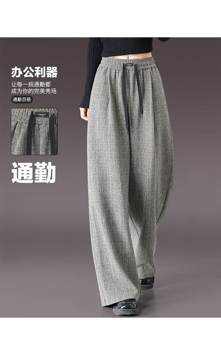 商品名称:复古阔腿裤女夏季高腰松紧系绳时髦气质大码直筒长裤显瘦 434015
