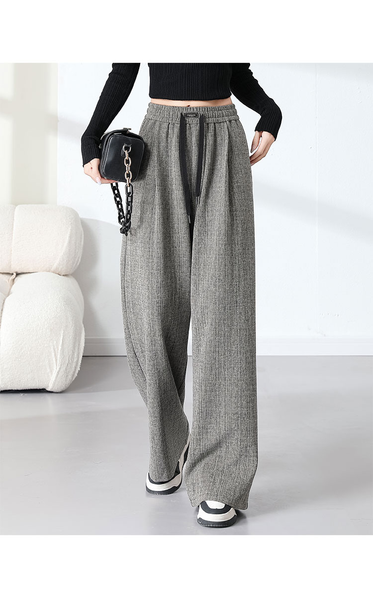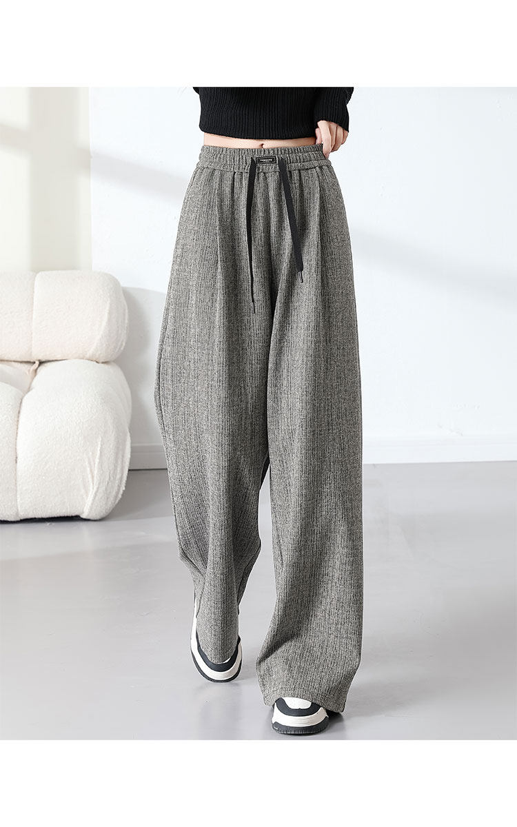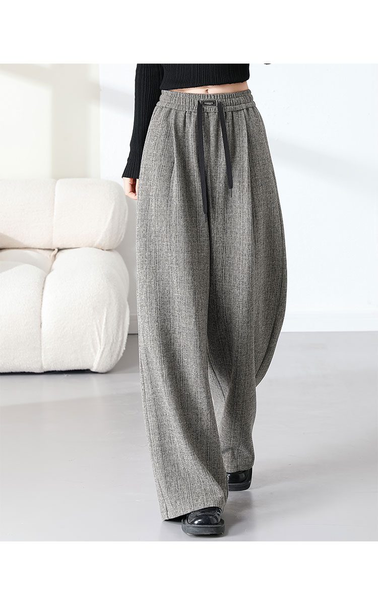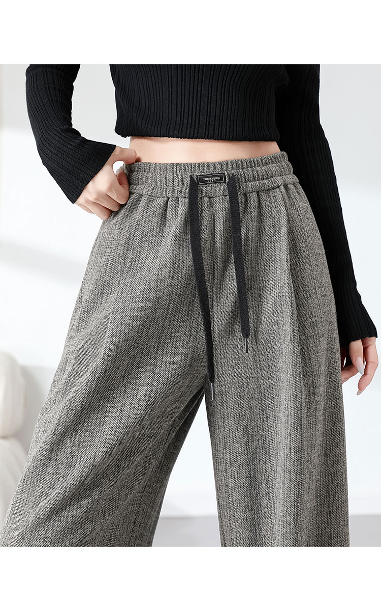商品名称:复古阔腿裤女夏季高腰松紧系绳时髦气质大码直筒长裤显瘦 434015