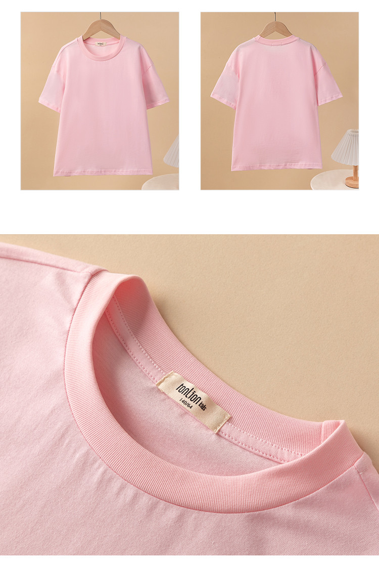 商品名称:儿童纯棉T恤春秋时尚男童女童短袖衫中大童吸汗落肩短袖T恤上衣 423375