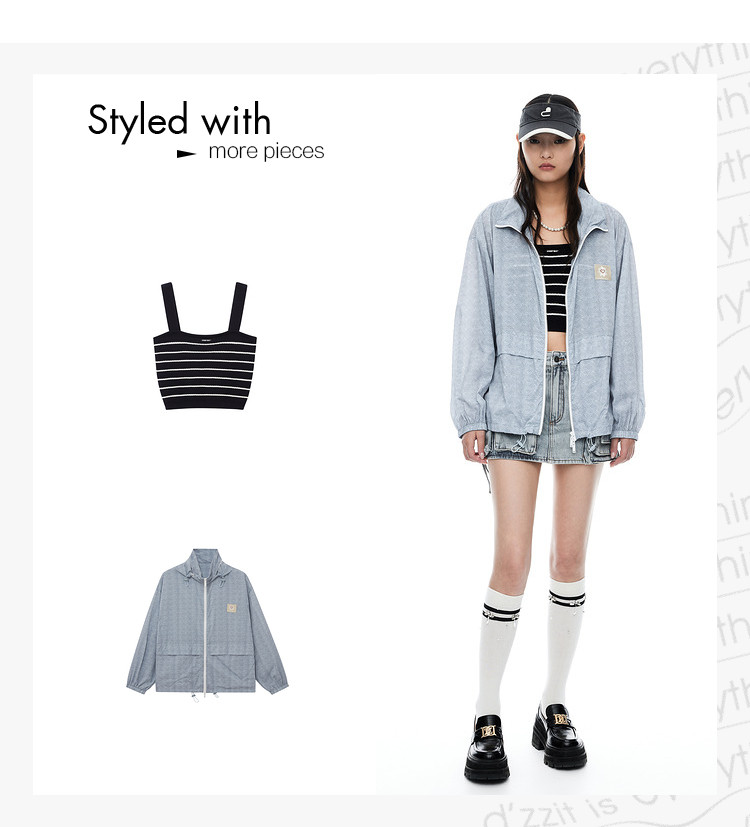 地素棒球外套夏季满印印花连帽夹克外套女 807627